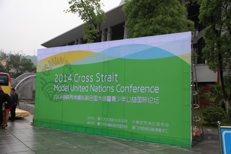 2014年5月9日下午3:30,2014年度海峡两岸模拟联合国大会暨青少年公益国际论坛在厦门大学本部科学艺术中心隆重举行。本次大会开幕式及论坛由厦门大学国际关系学院、共青团思明区委员会主办,由厦门大学模拟联合国协会与厦门市思明区畅德青年汇共同承办。