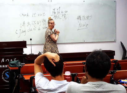 汉语角活动为我校海外留学生提供了一个学习汉语,交流中华文化的平台。这里的课堂轻松活跃:授课的老师是来自厦门大学各个学院的同学,幽默风趣、充满热情;听课的学生是对汉语和中华文化感兴趣的外国友人,求知心切、友善近人。