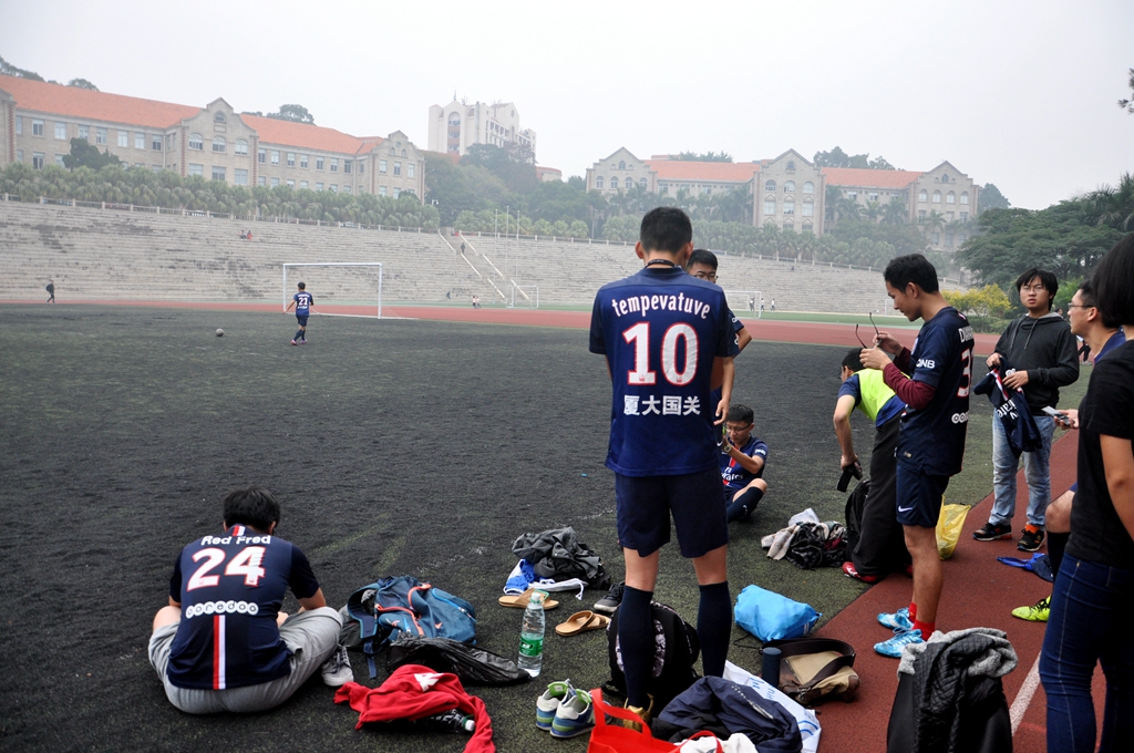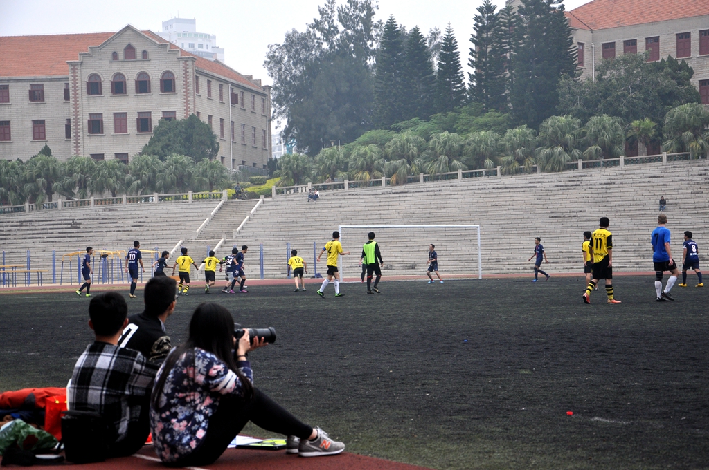 2015年12月22日中午,厦门大学学生超级足球联赛在上弦场举行,对阵双方是国际关系学院暨南洋研究院足球队(下称国关)和外文学院足球队(下称外文)。经过了近两个小时的精彩角逐,最终国关以2:0战胜外文,取得胜利,让我们为国关足球队队员们喝彩!