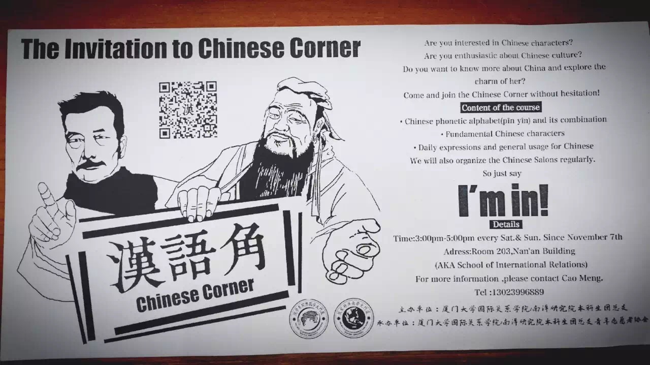 汉语角活动非常有意义,不仅能为校内的国际生门提供义务的帮助,让他们了解中国的文化、学习日常的汉语,而且让志愿者们也得到了很大的提高,我很有幸能作为一名志愿者参与其中,从严格意义上来说应该是我第一次参加文化交流相关的志愿者活动,从看到招募志愿者通知时起,我就做足了准备卯足了劲,为面试做准备,搜集资料,直至到通过面试,开会讨论,备课,练习口语等等,因为这个活动,我们的每一个周末都丰富充实。