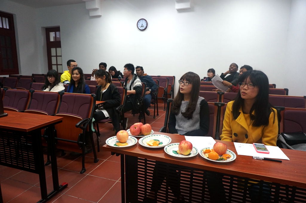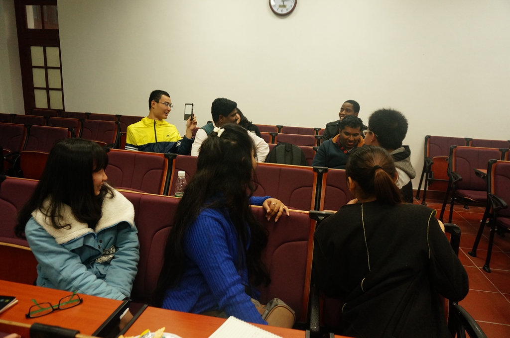 2015年12月27日下午三点,本学期由国际关系学院暨南洋研究院青年志愿者协会主办的汉语角活动迎来了最后一堂课。让我们一起来看看这堂知识与游戏融合,笑声与不舍并存的小课堂、大天地吧!