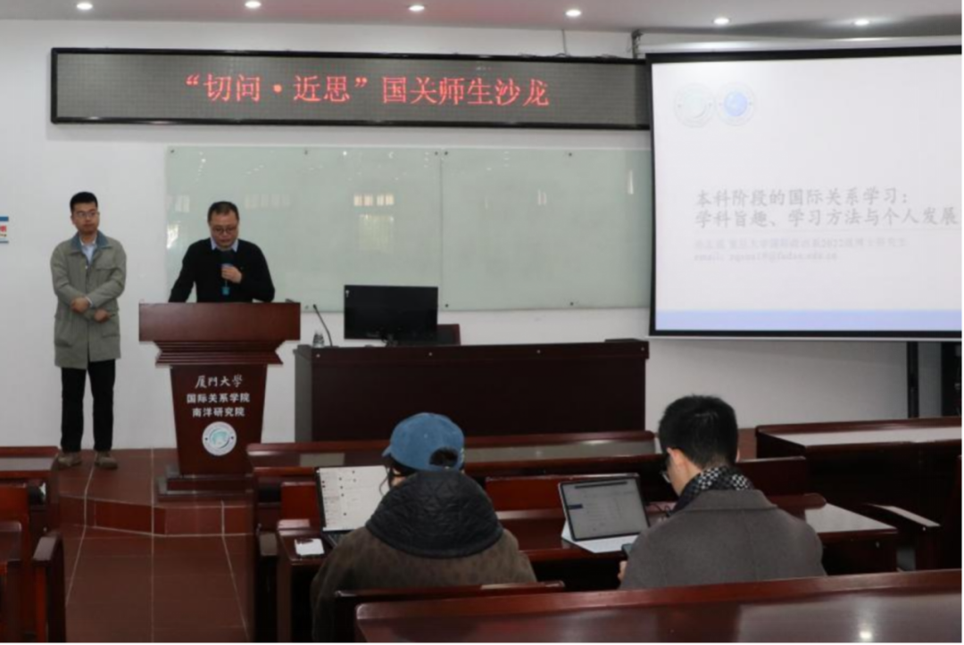 湖柳垂绦处,书声叩春扉。2025年3月10日上午,今年第一期“切问,近思”国关师生沙龙活动在南安楼101会议室成功举办。本期沙龙活动邀请了复旦大学国际政治系2022级博士研究生、厦门大学国际关系学院/南洋研究院2015级本科毕业生孙志强。孙志强同学结合自身的本科学习与生活经验,为大家带来题为“本科阶段的国际关系学习:学科的旨趣,学习方法与个人发展”的分享。本次活动的主持人为厦门大学国际关系学院/南洋研究院衣远副教授,厦门大学国际关系学院/南洋研究院副教授王昭晖担任与谈人。出席本次活动的还有厦门大学国际关系学院/南洋研究院党委副书记何丽苹、院团委书记肖丽玮。