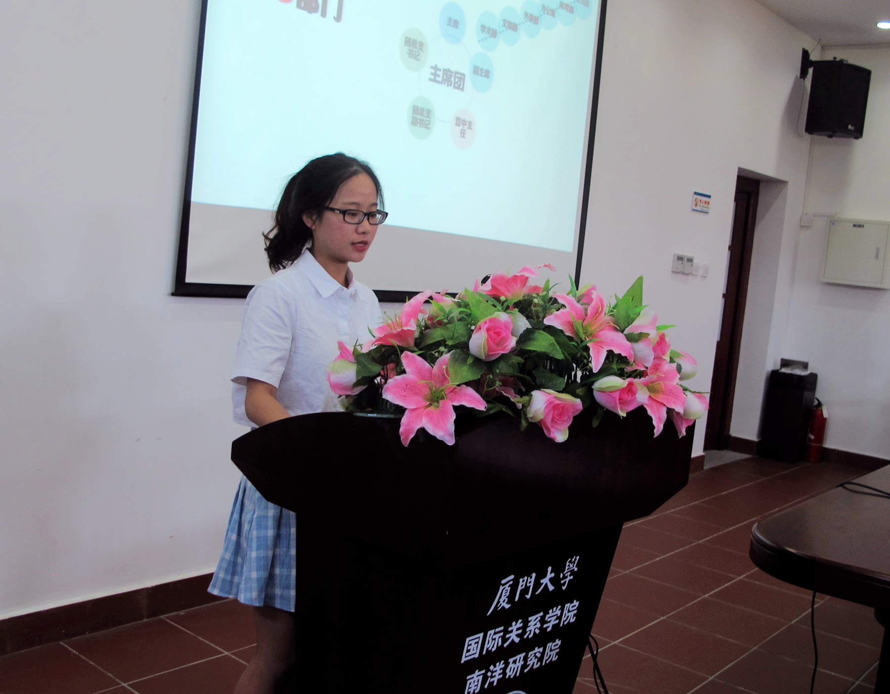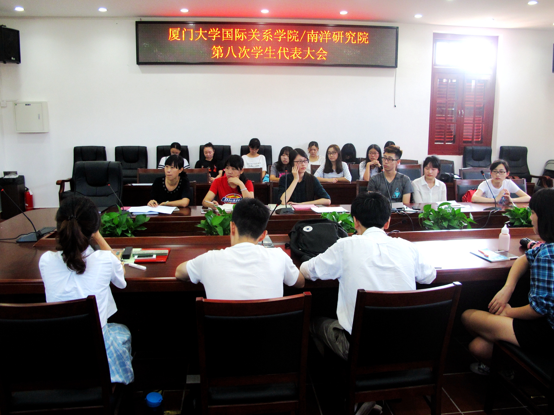 2016年6月24日15时,厦门大学国际关系学院暨南洋研究院第八届本科生学生代表大会在南安楼301举行。本科生团总支书记李布言主持此次大会,党委副书记黄俊清、团委书记沈丽秀及辅导员郭晓玲出席会议。本次大会的主要内容包括团总支、学生会、宣传中心的换届选举和上一届学生干部任职证明的颁发。