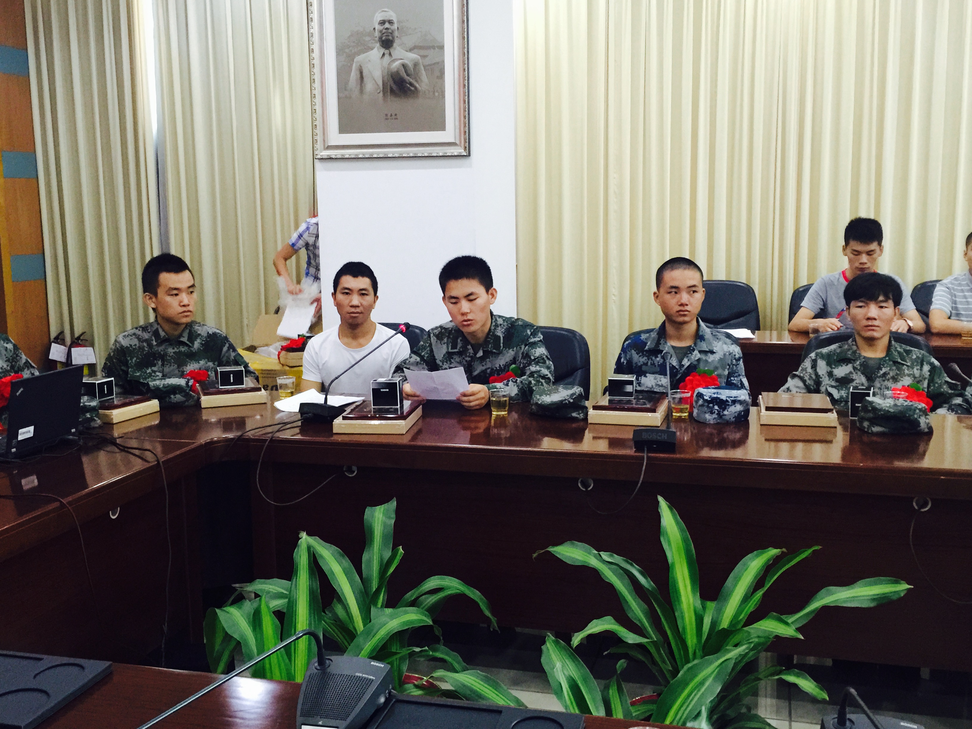 会上,我院2015级本科生王中华作为新兵代表发言。王中华同学说:“厦门大学教授邹振东说:即使你的一生中有一百次随波逐流,但你是否可以保留人生的1%的空间,有时候可以不去随波逐流。1%理论实际上是妥协中的不妥协。小时候读唐诗就有男儿何不带吴钩,收取关山五十州的诗句,虽然不是因此而去当兵,但至少是受到一些影响的。1%的不随波逐流也好,收取关山五十州也好,都让我对穿上军装有了新的定义,不能说自己这样做是正确的而其他人是错误的,至少这一次是我们自己的选择,无怨无悔,别无所求。”说出了24名厦大新兵们的共同信念。