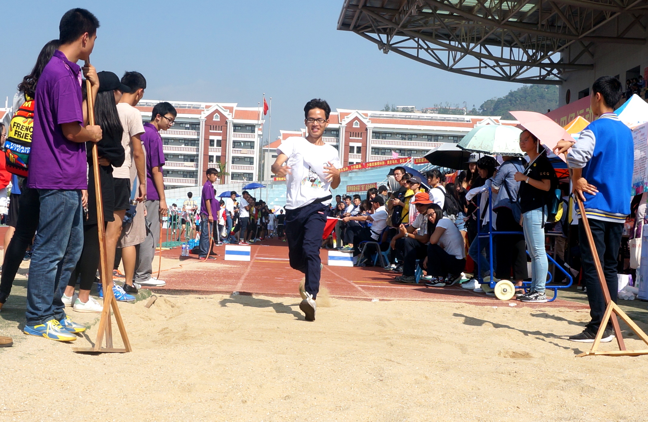 在田径场上,他们拼尽全力,向前奔跑,脸上写满了自信,内心是不悔的坚持;在三级跳远的现场,国关的腿值担当闪亮登场,请准备好你们的膝盖;各种接力和集体项目则是彰显了我大国关的团结一致和亲密无间……正是他们的不懈努力,为我们赢得一个大大大大奖,至于是什么奖嘛,果罐君在这里先卖个关子,各位可以任意想象,尽情发挥。好了,话不多说,直接上干货啦!