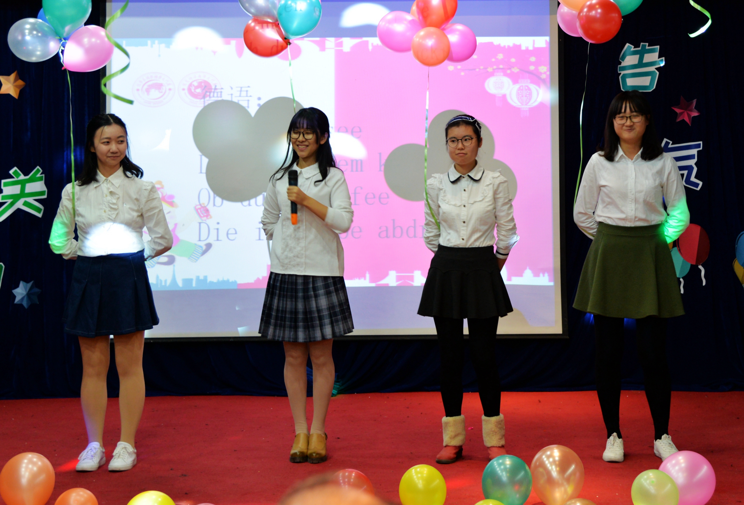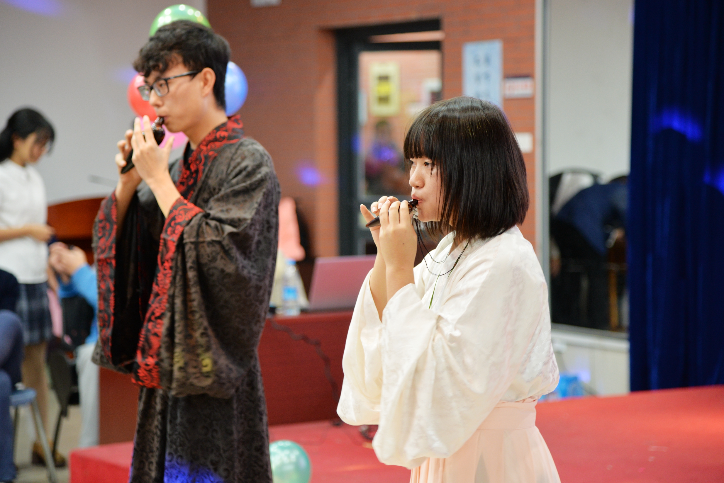本场晚会一共有17个节目,包括了歌舞、诗朗诵、魔术、乐器演奏等。抒情、摇滚等各种风格的歌曲轮番演绎,精彩的舞蹈《怎样》、《热萨玛》点燃全场,悦耳的陶笛演奏《神话》意蕴悠长……节目类型丰富,精彩不断。同时还有场外的互动游戏环节,无论是你划我猜,还是我是歌手挑战,师生们的共同参与都让晚会笑声不断。同时今年也延续了微信墙的互动方式,让大家能够畅所欲言地告白国关南洋,表达自己的新年愿望和对新年的期待。