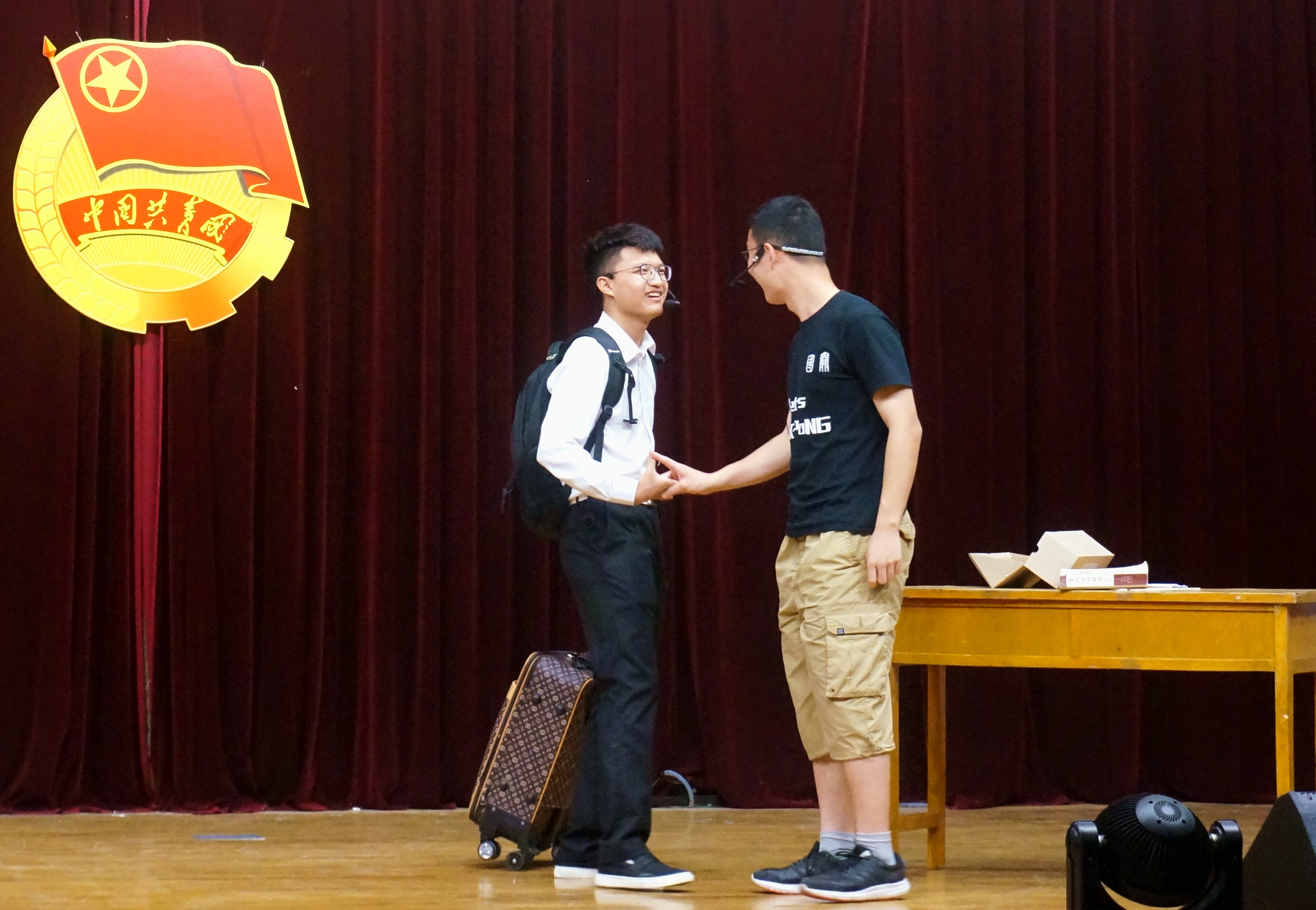 国际关系学院暨南洋研究院2015级本科生团支部带来的话剧是《此间的少年》,该话剧融汇了国关专业特色,并结合当下大学生的真实学生、生活情况,形象生动地为我们展示了一出“我的青春我的团”的别样风采。参加本次话剧表演的同学有孙志强、令宇豪、王瑞祯、郑恺乐、杨洋、徐桐、聂茜雅、华晓芸。