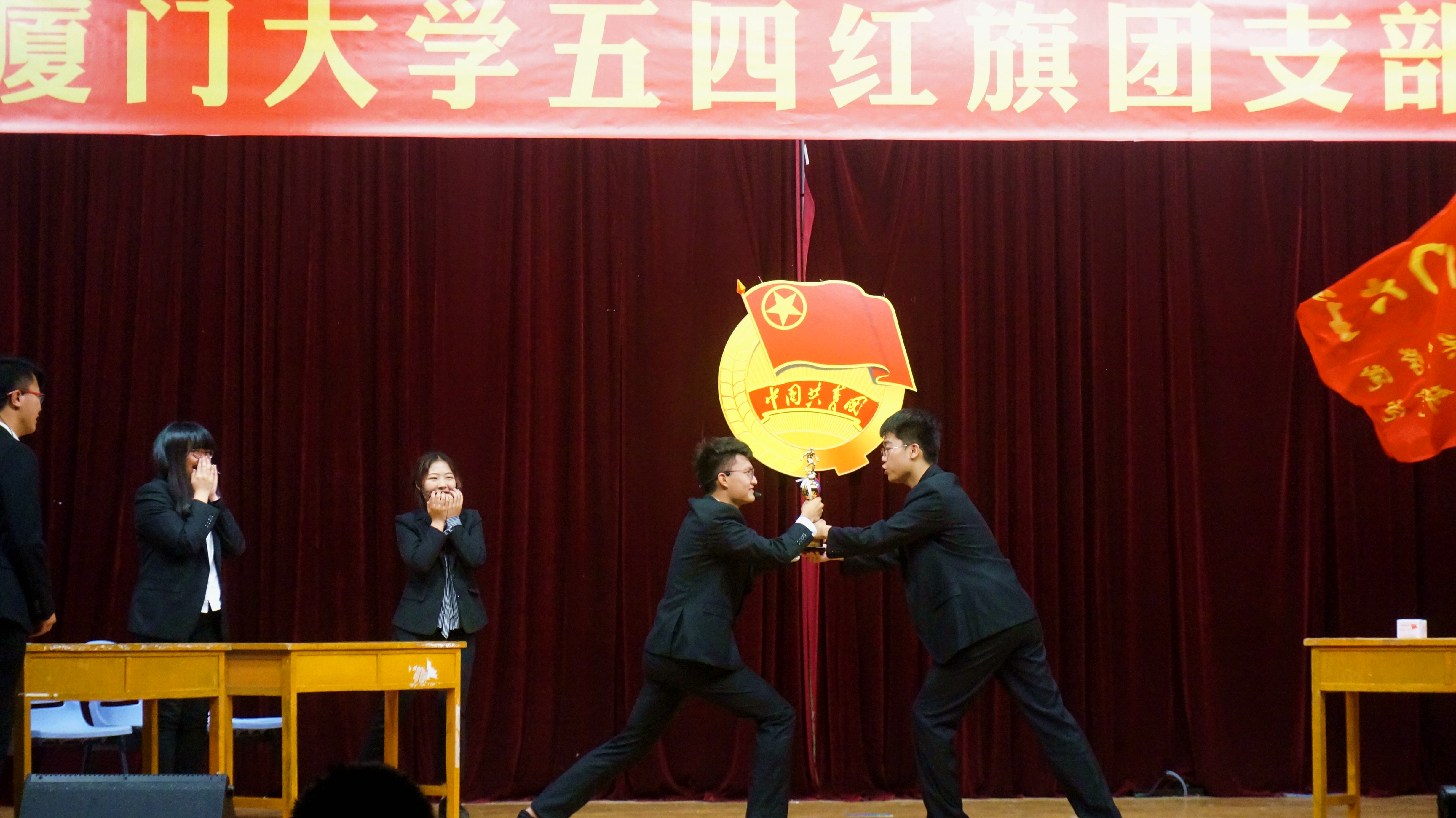 2017年4月22日,厦门大学一年一度的五四团支部标兵评选活动在法学院盛大开幕。来自国际关系学院暨南洋研究院、新闻传播学院、管理学院等22个学院的团支部为大家在该活动上带来了精彩纷呈的话剧表演,他们将各自专业的特点以及日常生活融入话剧表演中,展现了厦大学子的青春活力和传承至今的五四精神。