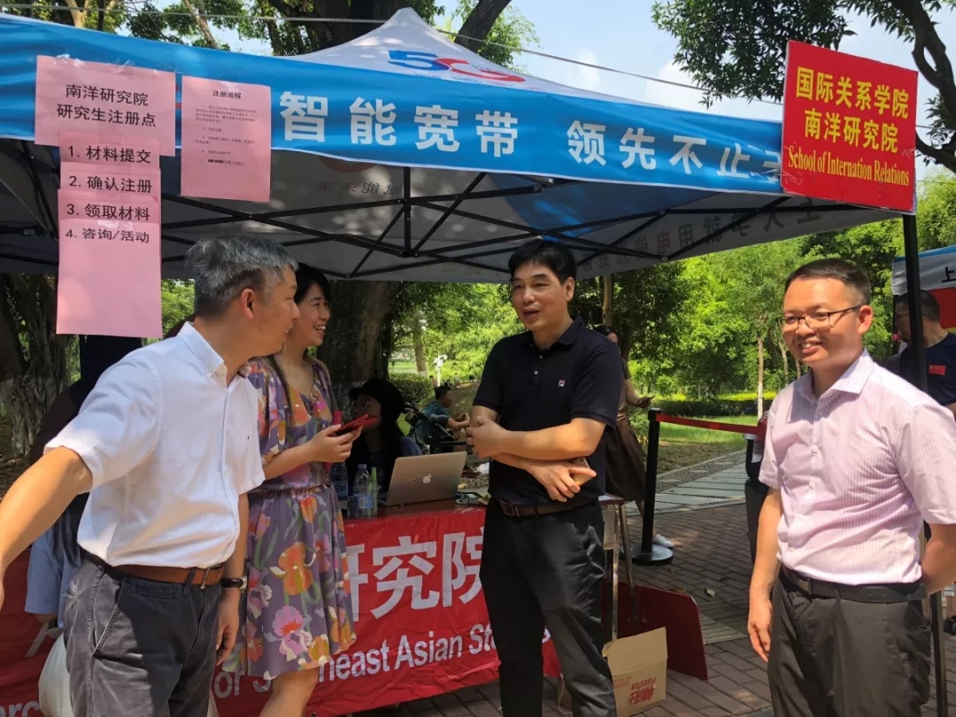 2019年9月10日早七点,南洋研究院的学长学姐们身着院服,早早来到了思明校区的迎新现场,为即将到来的萌新们的注册入学工作做好准备,与此同时,另一批身强力壮的学长们也在海韵校区蓄势待发,等待帮助萌新们搬运行李。