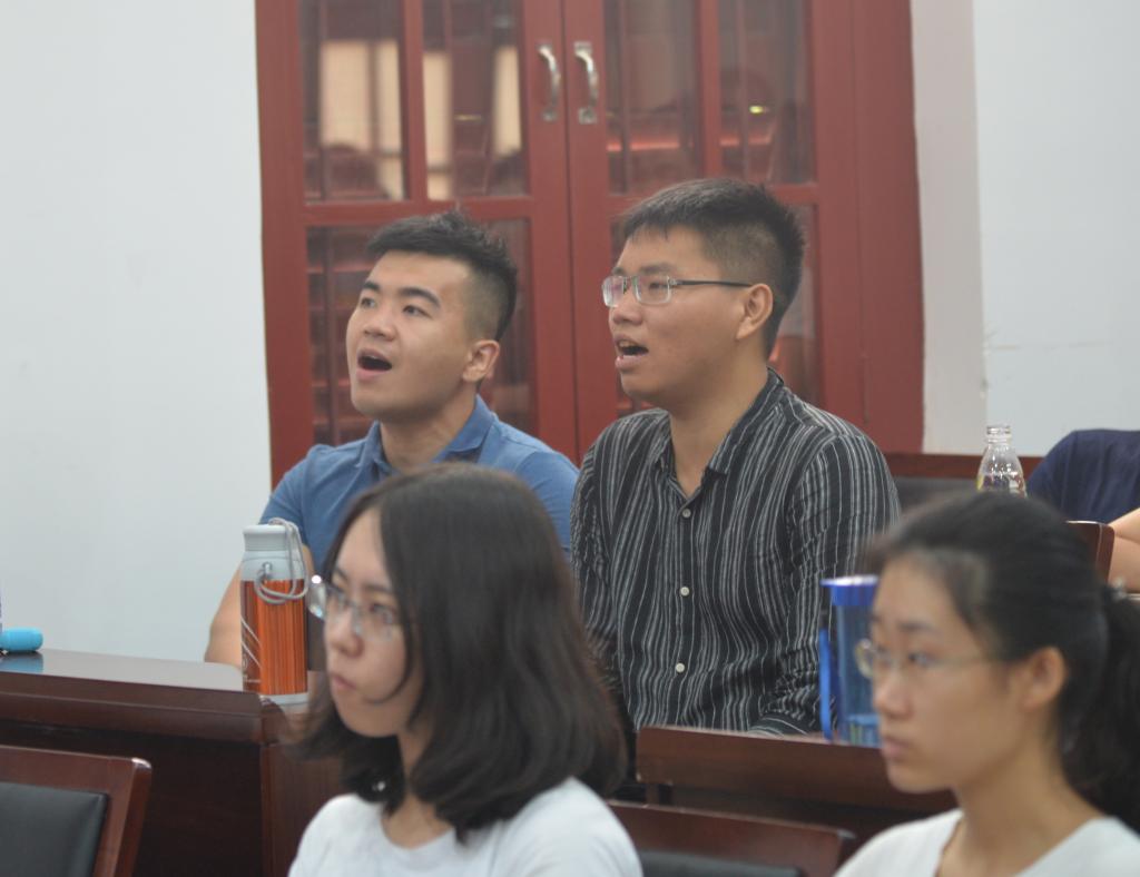 上午九点,学唱校歌活动正式开始。首先,负责带领新生们学唱校歌的吴卉轩同学和大家一起听了一遍校歌。歌曲朗朗上口、铿锵有力,同学们积极随着领唱人的口令练习。“自强!自强!人生何茫茫?”,朗朗歌声在教室中荡出了圈圈涟漪,漾出国关学子的自信风采。
