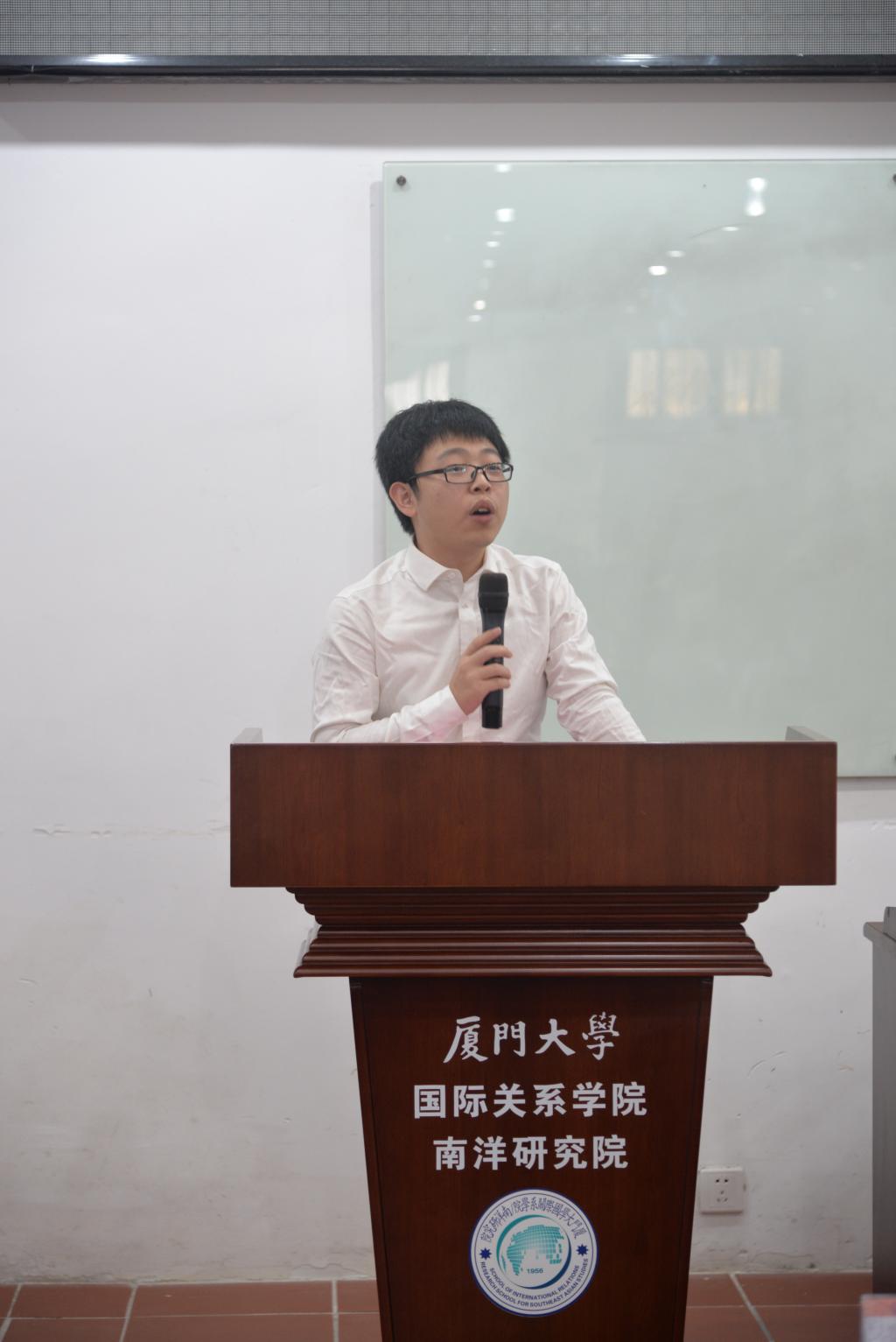 接着,2018级老生代表国际关系硕士研究生沈度发言。沈度同学提醒到,新生虽然已经告别了从前的考试“苦海”,但是学习依然在继续,希望新生立足高远、心怀宽广、力求向上,传承发扬国关南洋人的“精气神”。