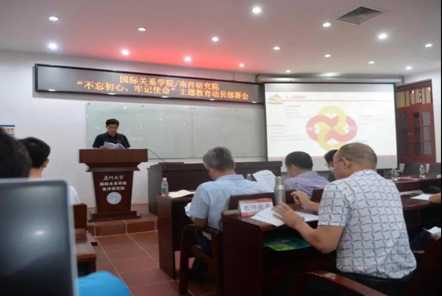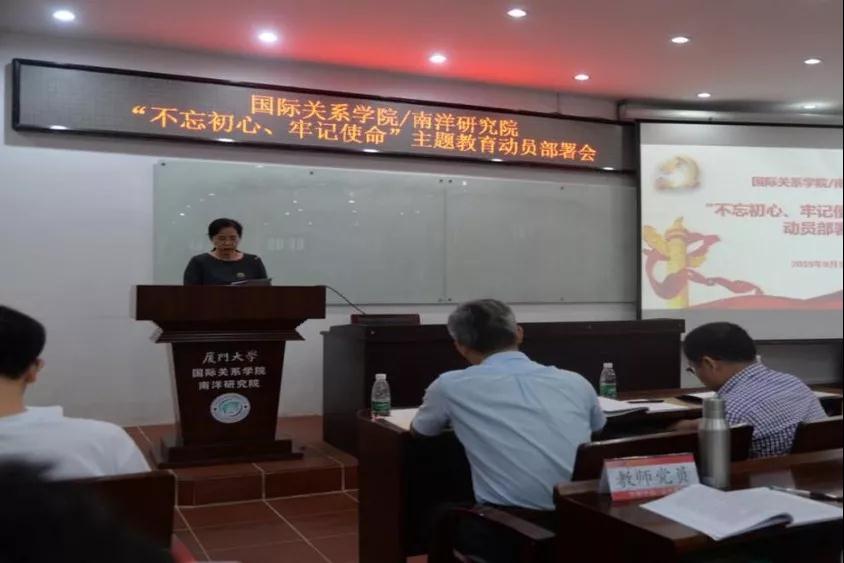根据中共中央关于开展第二批“不忘初心、牢记使命”主题教育的意见要求,厦门大学全面展开主题教育。2019年9月19日下午,厦门大学国际关系学院/南洋研究院党委召开“不忘初心、牢记使命”主题教育动员部署会。