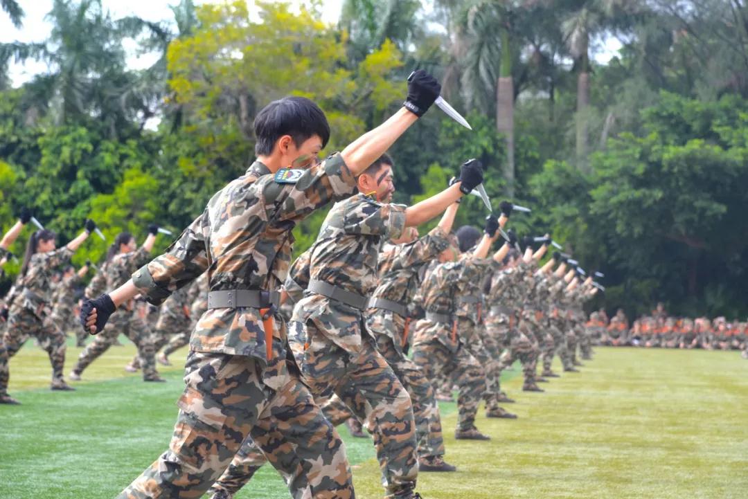 分列式后,匕首操、虎扑拳、旗语、排战术等军训汇报科目轮番上演,精彩不断,激起了现场观众雷鸣般的掌声和此起彼伏的欢呼声,整个汇演逐渐被推向高潮。