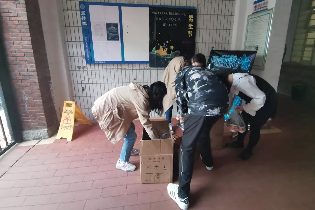 周末早晨负责人们六点集合完毕,简单分配完任务后,第一项给男生送早餐的环节就开始啦!志愿者们把早餐送到了寝室门口,并且把女生们写的明信片贴在了各个寝室门上。