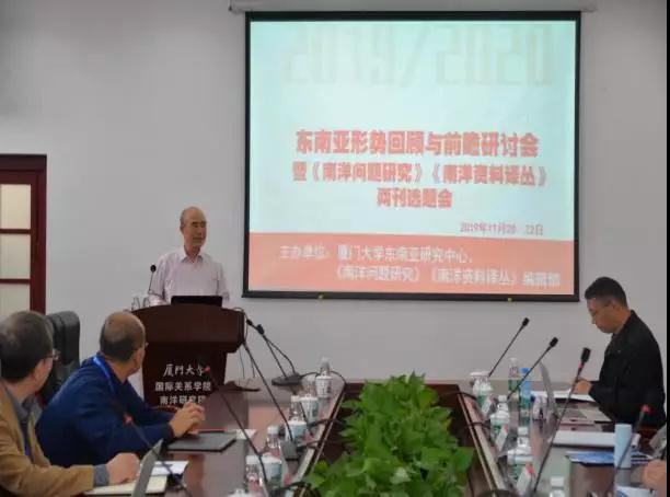 2019年11月21日,2019/2020东南亚形势回顾与前瞻研讨会暨《南洋问题研究》《南洋资料译丛》两刊选题会在厦门大学南安楼301(3)顺利举行。本次会议邀请了东南亚研究领域的知名专家学者,诸位学者结合自身专业和实践经历,分享了对东南亚形势最新研究热点及两刊选题的意见和建议。会议由厦门大学国际关系学院/南洋研究院院长李一平教授主持。