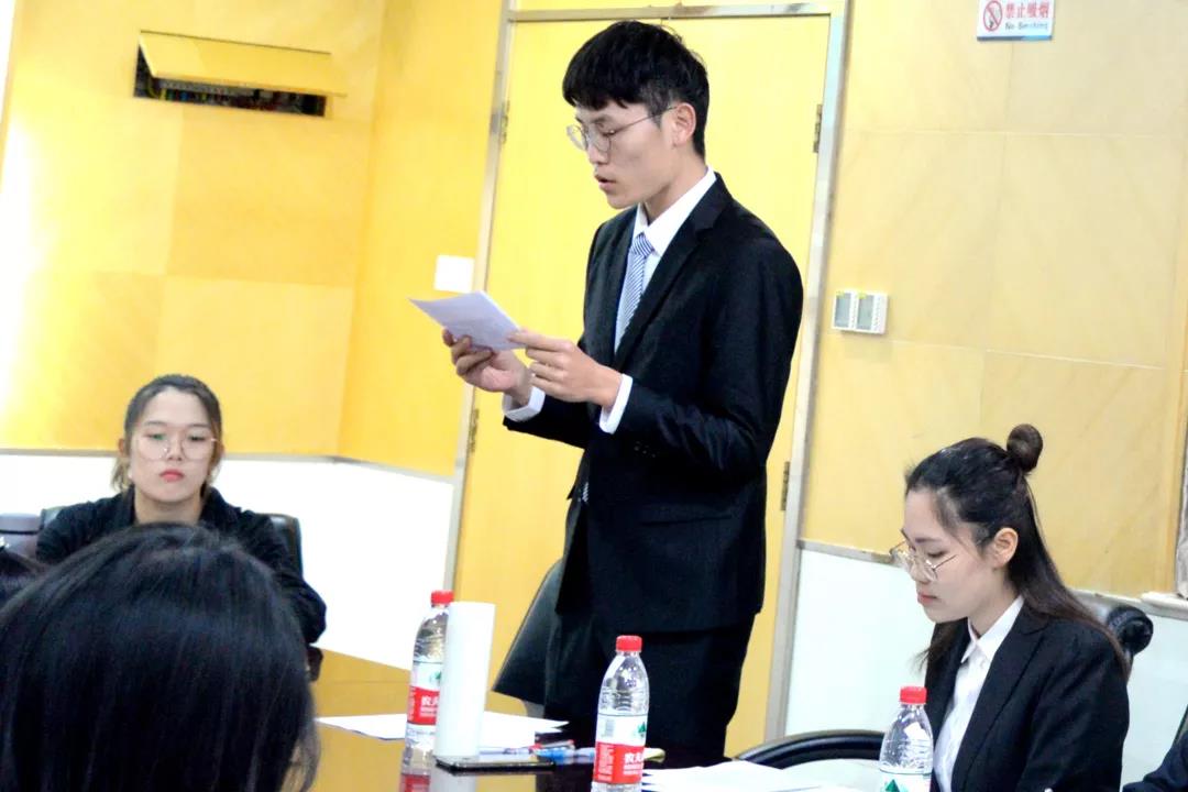 在法学院的会议室里,两方的辩手早早到来,坐在指定的位子上,翻阅熟悉着准备好的资料和稿子,气氛肃穆,连场下的观众都感受到了紧张和压力。