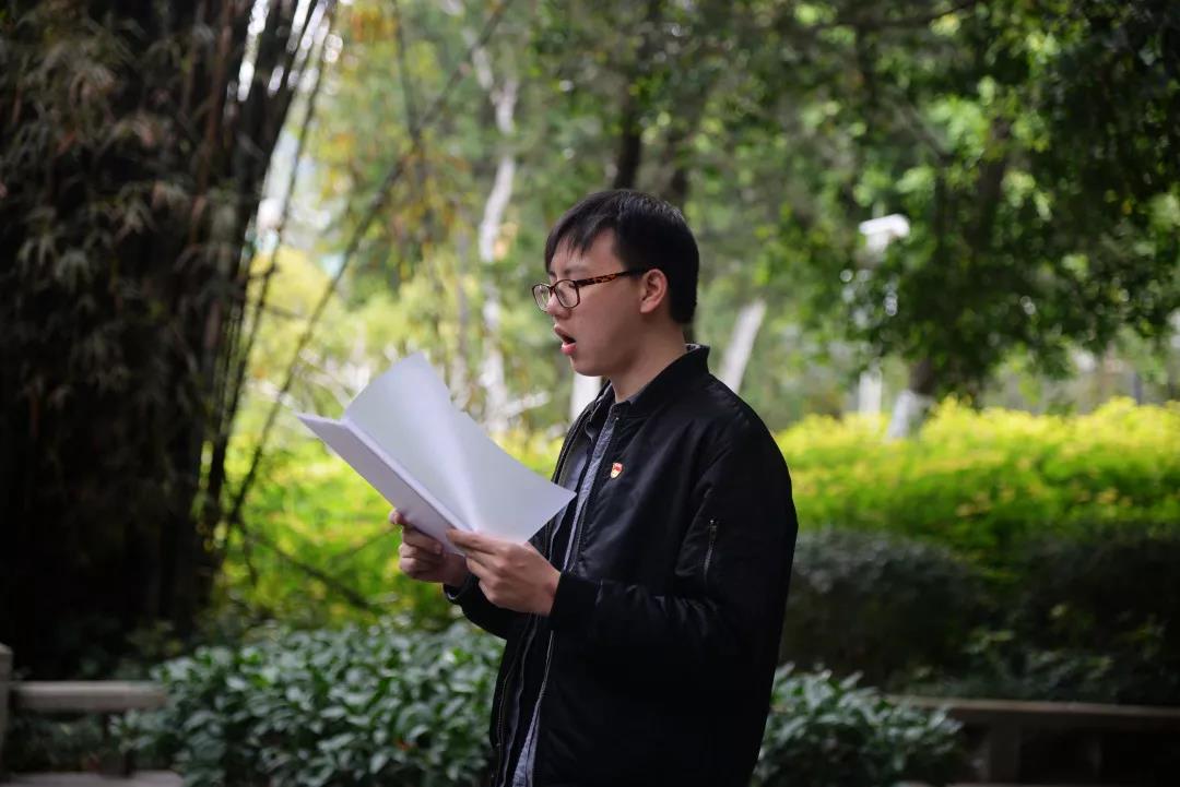 首先,在祭扫的开始,由国际关系学院2018级硕士生党支部杨霄为大家诵读了郑朝宗教授为萨本栋校长所作的墓志铭《萨公颂》,通过此寥寥四百余字,追思萨本栋校长与师生同甘苦共患难,从严治校,身体力行,率先垂范的动人故事。