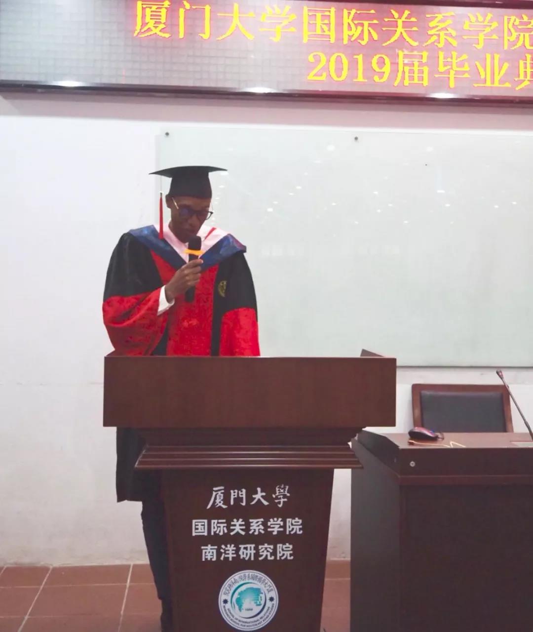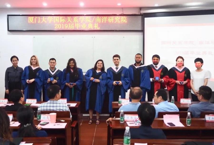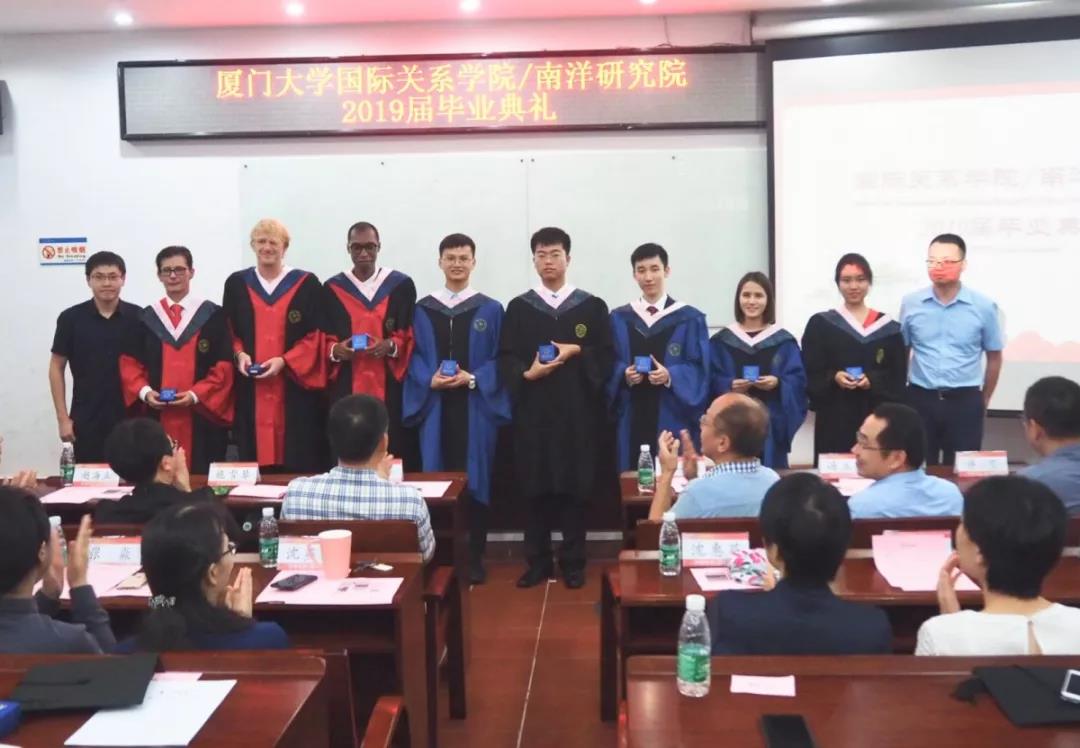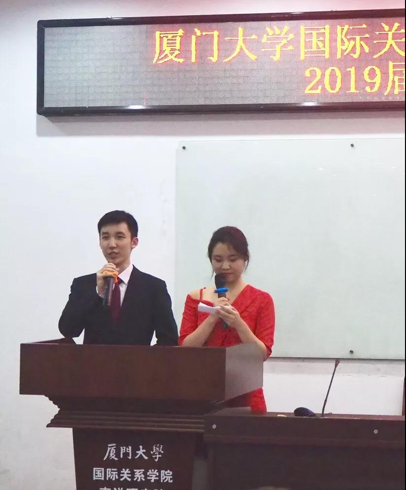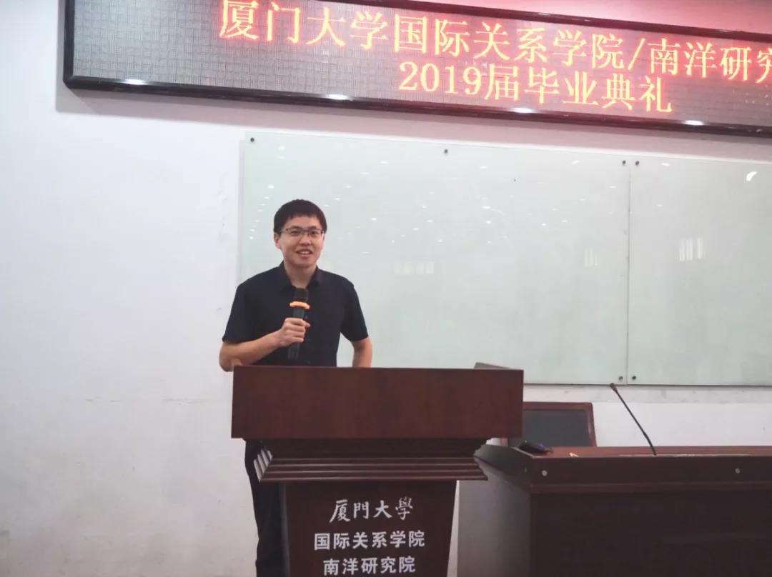 6月13日下午,厦门大学国际关系学院暨南洋研究院2019届学生毕业典礼在南安楼101隆重举行。院党委书记张必华老师、院长李一平老师、副院长施雪琴老师、侨务与外交系主任冯立军老师、国际关系系副主任赵海立老师、东南亚经济研究所所长许可老师,以及沈燕清老师、沈惠芬老师、张淼老师、闫森老师、王昭晖老师、院团委书记曾祥轩老师、辅导员郭晓玲老师出席典礼,典礼由毕业生曹江涵、郑乃齐主持。