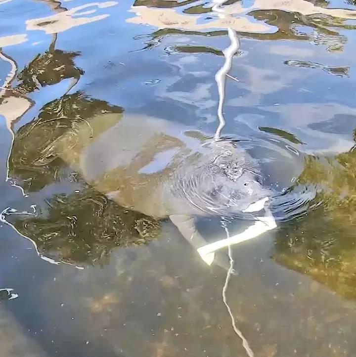 2018年11月16日报道,皮划艇爱好者Michael McCarthy发现一只海牛幼崽把一个塑料垃圾当成了美食,大口咀嚼试图将其吞下肚子里。Michael见状立即上前,把塑料垃圾从它口里拉了过来,而这个小家伙还以为是Michael在跟它玩游戏,咬住塑料不松口,Michael跟它耗了好一会才把塑料从它口中拉了出来。