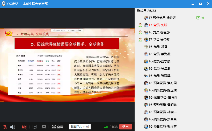 4月6日下午14:30,学院本科生联合党支部进行了一场题为“中国援外抗疫,构建共同命运”的党课学习。