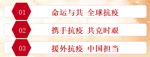 会议之初,由杨健斐同志讲述目前全球疫情情况,介绍中国援外抗疫情况,展现大国担当与责任,充分体现了构建命运共同体的价值。