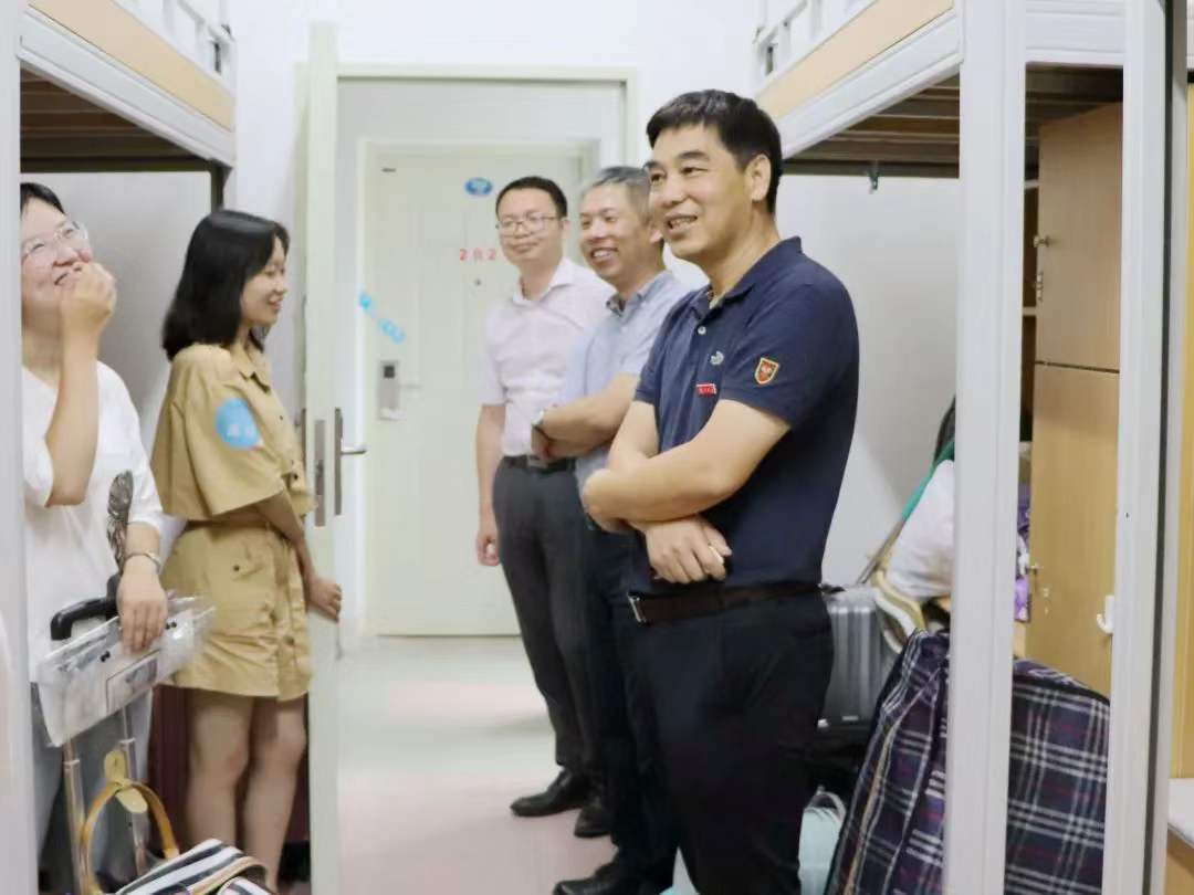 当晚,学院党委书记张必华、党委副书记陈伟、团委书记曾祥轩、辅导员郭晓玲老师走访并参观了各宿舍,问候离开父母,开始独立生活的同学们。