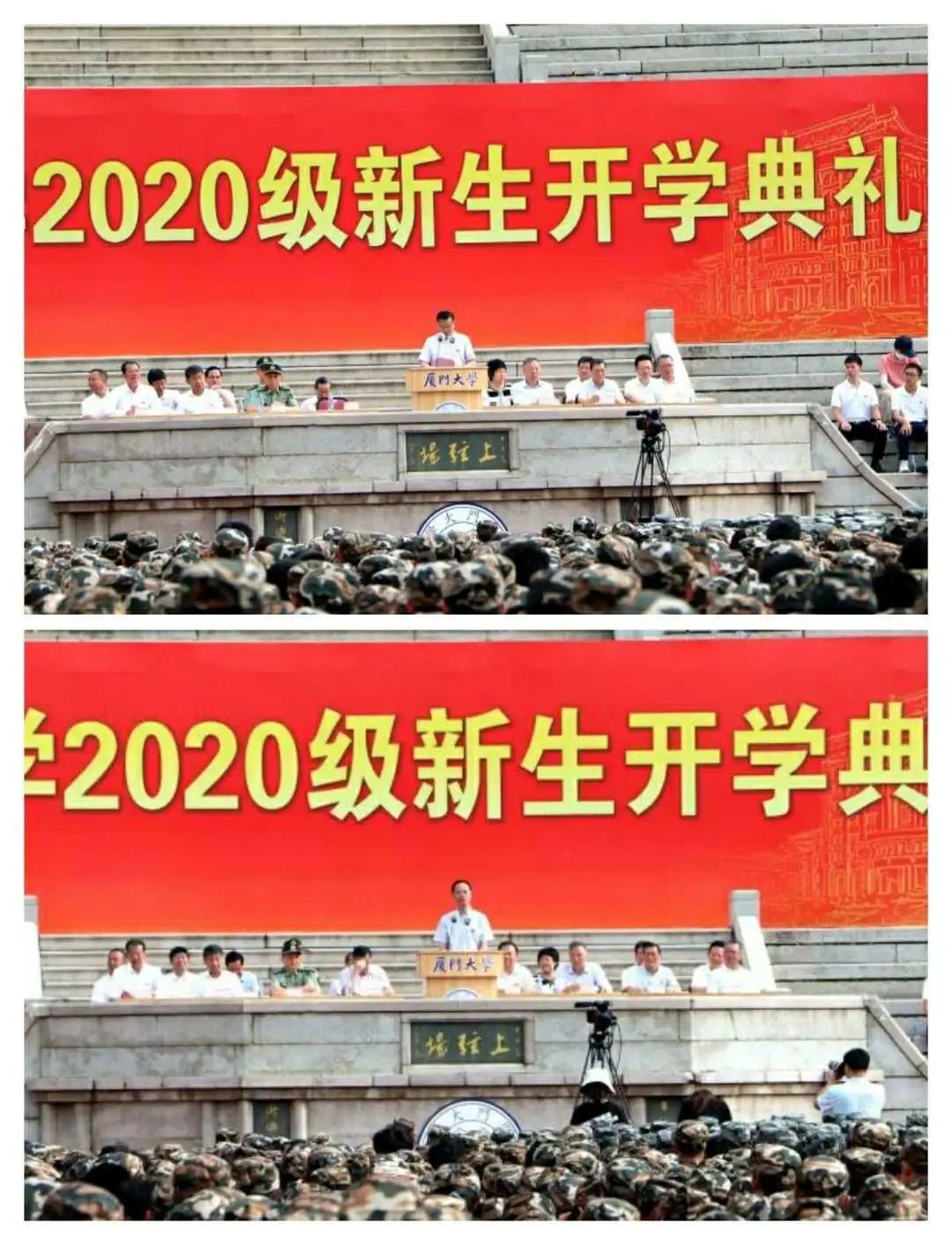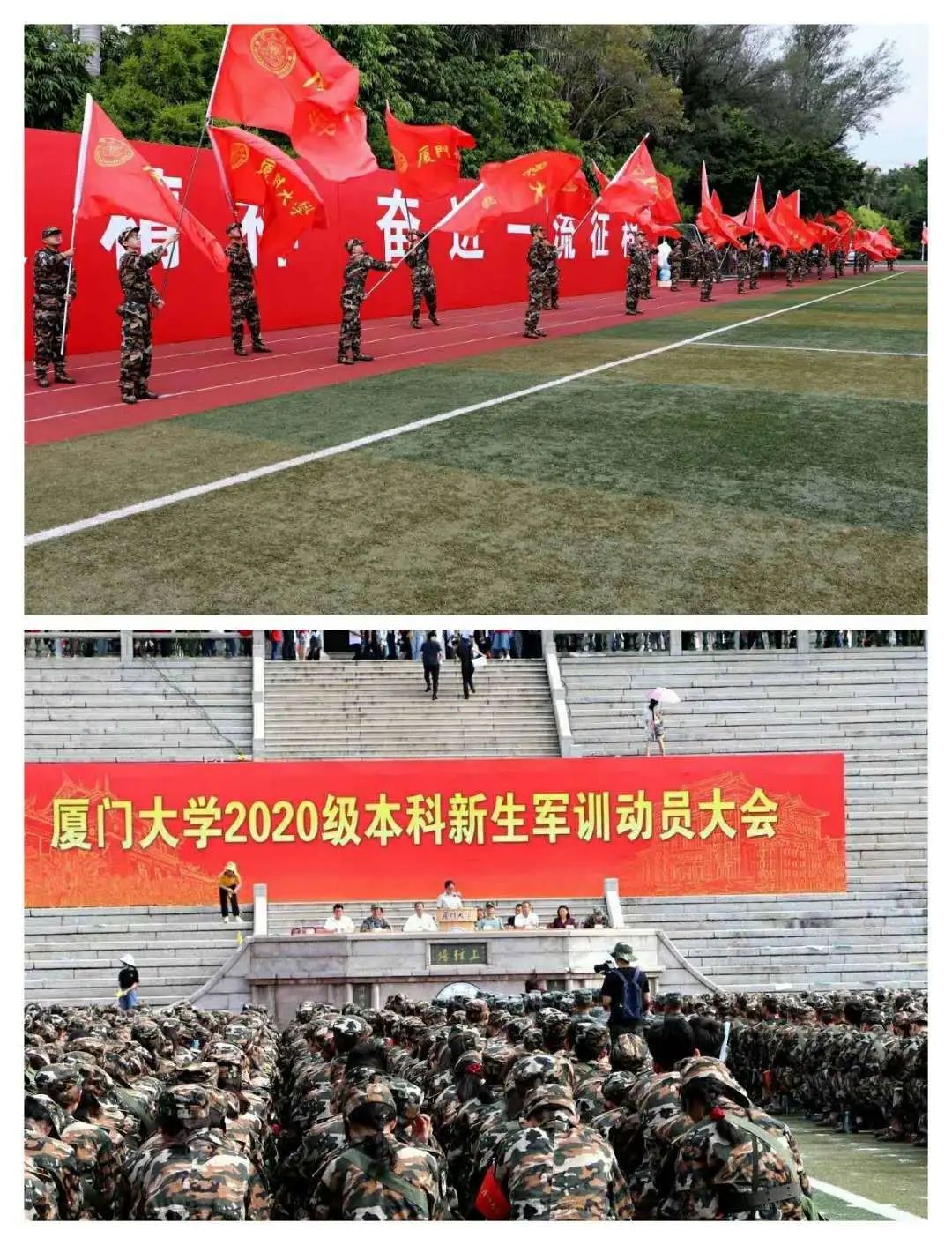 上午8时,厦门大学2020级新生开学典礼和军训动员大会以线上线下结合的方式于上弦场隆重举行。伴随着嘹亮的国歌,同学们凝视着鲜红的国旗徐徐升起,心潮澎湃。