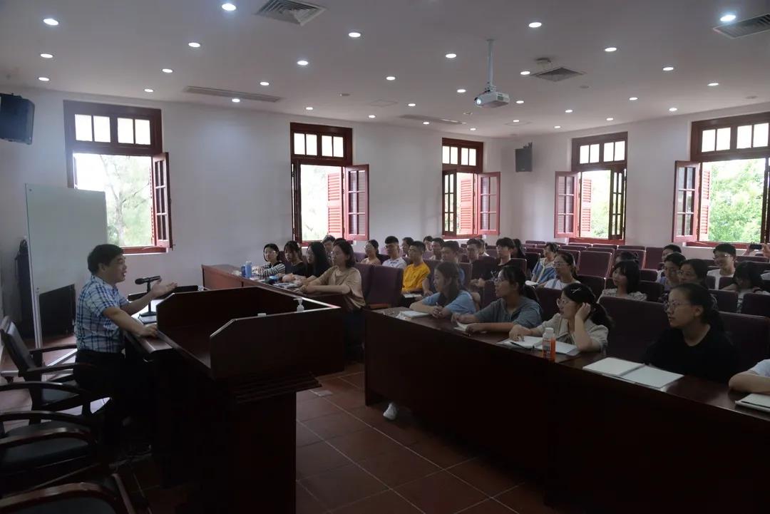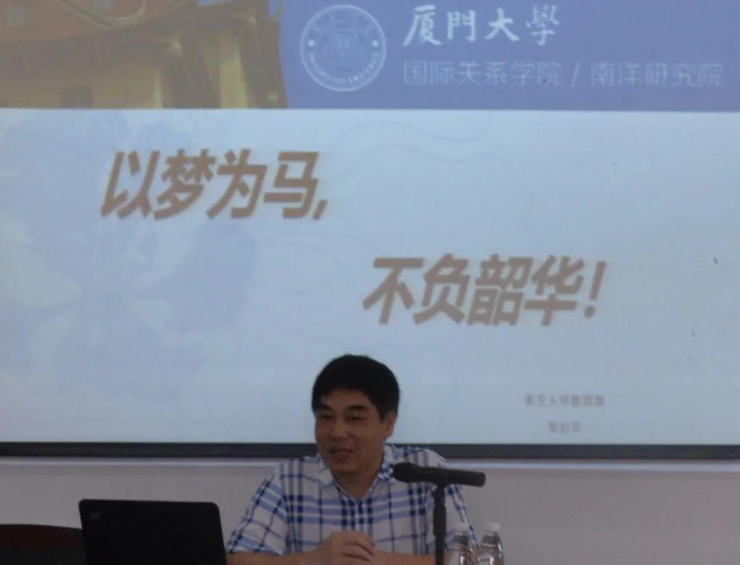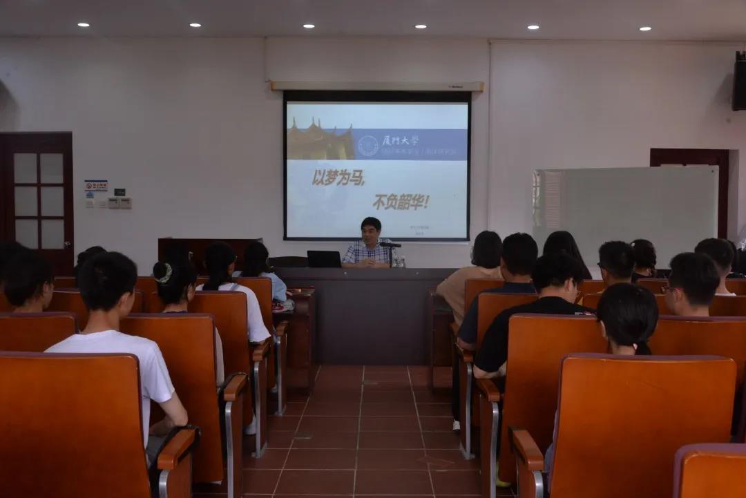 张必华老师首先欢迎大家来到厦门及厦门大学,之后以“你是谁?你从哪里来?你要到哪去?”这三个哲学终极问题开场,让新生们思考自己要怎么度过四年的大学生活。在新的起点,有人手不释卷、有人积极参加创业创新实践或比赛,也有人花前月下、有人迷茫随波。张老师希望大家积极向上,充分利用学校提供的丰富多样的平台和资源,充实并提高自己。因为大学是人生最重要的一个转折点,大学四年决定了未来的走向,只有早立志向,明确正确的方向,同时要重视理想与实践的联系,既要仰望星空,也要脚踏实地。如此以梦为马,方能不负韶华。