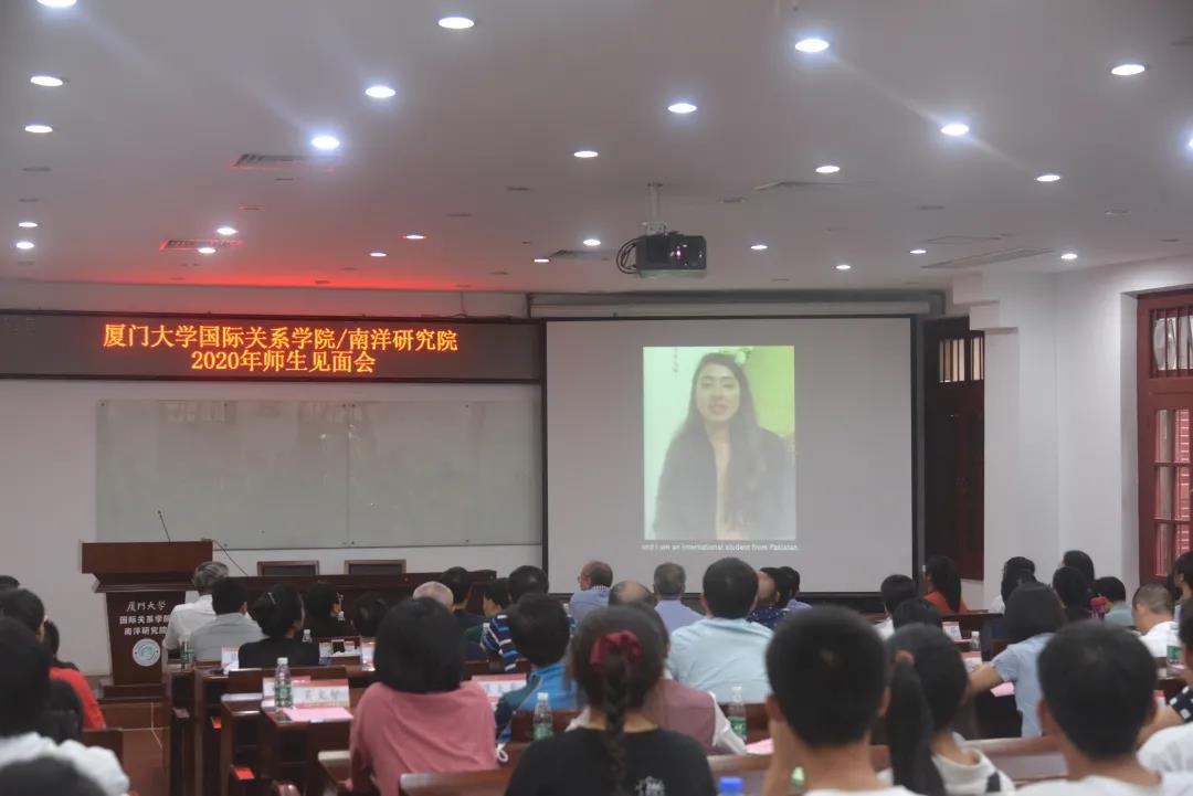 见面会在庄严的国歌声中拉开帷幕。接着播放了一段由新生录制的视频,视频蕴含着他们对自己未来的期许,也承载着家长的美好祝愿。随后,院党委副书记陈伟宣读了2020级本硕博新生名单和介绍到场老师,欢迎67名本硕博新生加入国关南洋的大家庭。