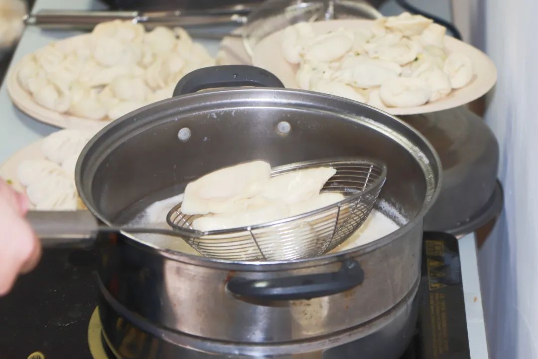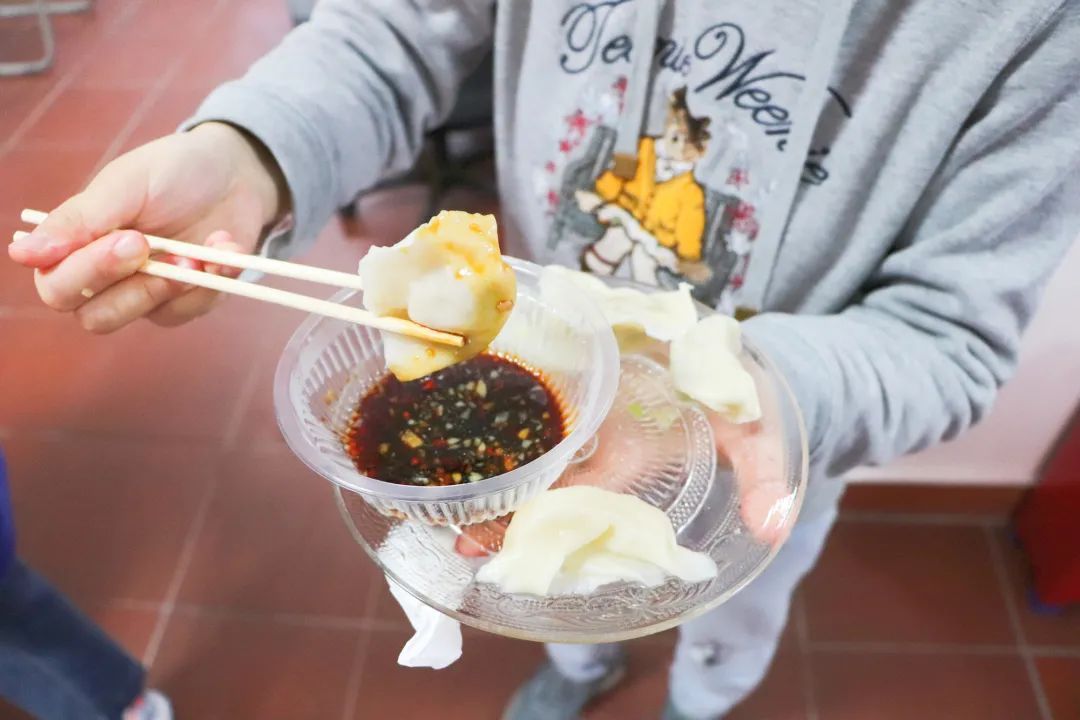 热气腾腾的锅面前往往络绎不绝,大家拿好小碗、筷子,齐刷刷的在锅子面前排起长队,攀谈着什么味的饺子最好吃。本次设有三口大锅,两处饺子点,同学们在两点间反复横跳,期盼吃到心爱的饺子。