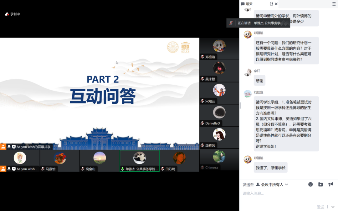 本次活动吸引了国际关系学院/南洋研究院、公共事务学院、社会与人类学院近百名学生参与。在互动环节中,同学们采用直接问答与评论区留言两种形式,与分享嘉宾深入交流申博准备及注意事项,嘉宾们根据问题积极解答同学们的疑惑。