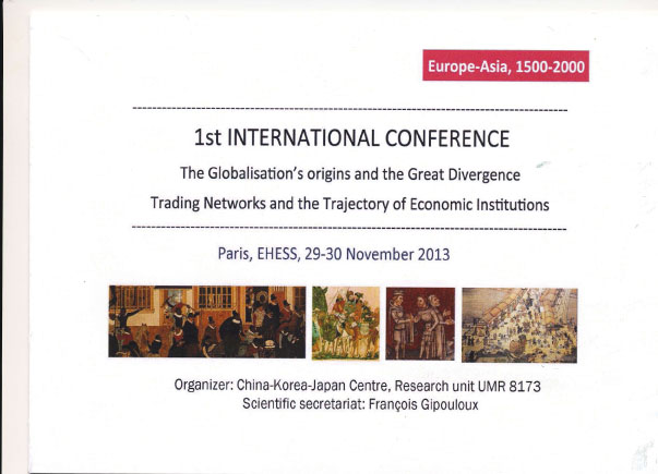 2013年11月27日至12月1日,我院聂德宁教授应邀前往法国巴黎,出席由法国科学研究中心—法国社会科学高等研究院中国、韩国、日本联合研究中心主办的“全球化的起源及其分歧:亚欧商业网络与经济制度的轨迹,1500-2000,第一届国际学术研讨会”(1st International Conference: Globalization’s Origins and Great Divergence: Trading Networks and Trajectory of Economic Institutions –Europe--Asia 1500-2000)。该国际学术研讨会于 ~30日在法国巴黎举行。来自法国、英国、荷兰、以色列、日本、中国大陆及中国香港的20多名专家学者共同出席参与此次研讨会。聂德宁教授向本次国际学术研讨会提交和陈述的论文题目是《18世纪末期巴达维亚华人的遗嘱及其遗产分配》(Wills and property allocation of Chinese in Batavia during the end of the 18th century)。