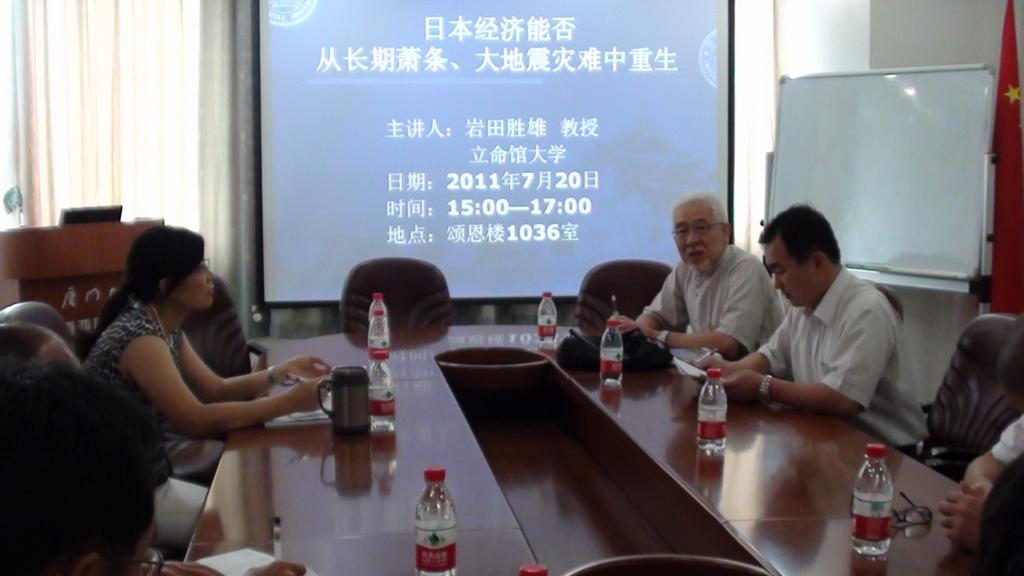 7月20日下午,日本立命馆大学名誉教授、社会体系研究所所长岩田胜雄先生应邀莅临我院,为我院师生带来一场名为“日本经济能否从长期萧条、大地震灾难中重生”的讲座。讲座由林梅副院长主持,金向东博士负责同声传译,我院师生十余人参加了讲座。