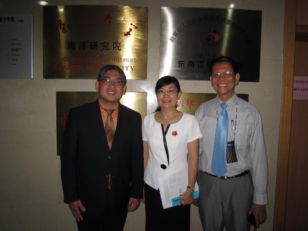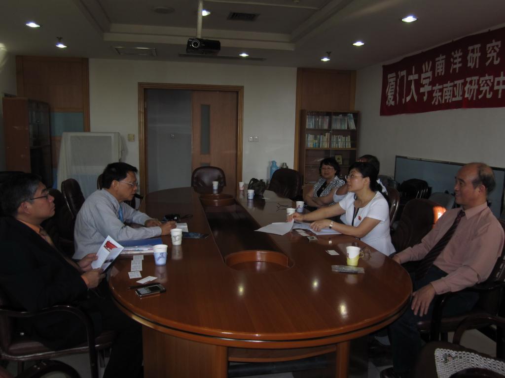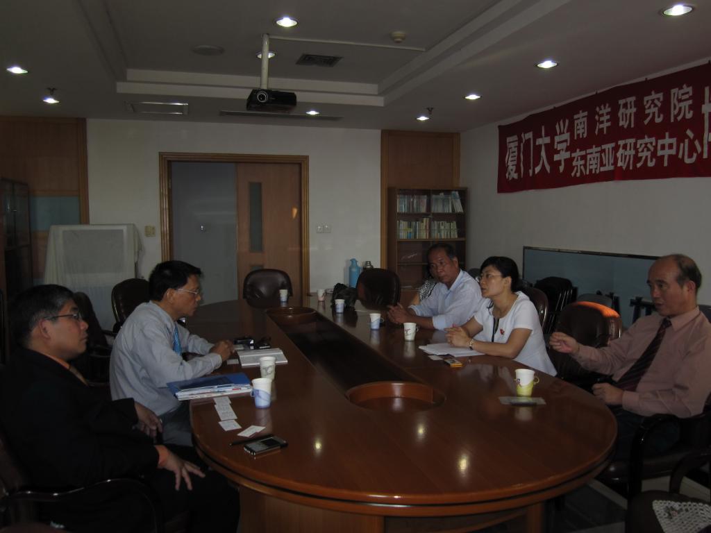 座谈由庄国土院长主持。主管对外交流事务的林梅副院长介绍了我院的机构设置、学生培养、学术队伍、研究领域、学术成果及我院海外学生培养、国际交流计划与项目、菲律宾研究等领域的情况。校长塞吉奥·曹与主任马里奥·麦克莱特也介绍了菲律宾大学的国际交流计划与项目及其中国研究。我院的国际化程度及各种国际交流项目让客人留下了深刻印象并表现出浓厚的兴趣,在谈笑中,主客双方探讨了将来双方可能的合作领域及合作的可行性。座谈结束后,客人还参观了我院的图书馆、马来西亚研究所等我院下属的职能部门与研究机构,并进行合影留念。