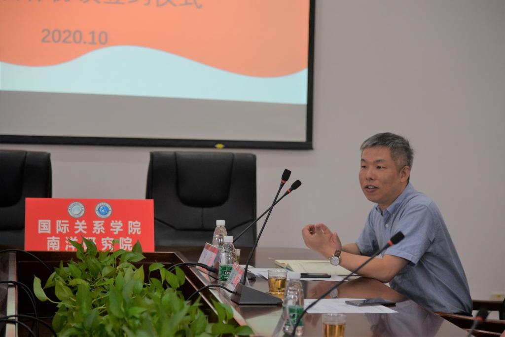 2020年10月30日,暨南大学国际关系学院/华侨华人研究院党委书记谢煊一行人到我院进行交流座谈。本次座谈由学院副院长施雪琴教授主持,参会人员包括院长李一平教授,副院长冯立军教授,党委副书记陈伟,以及教师代表和相关秘书。