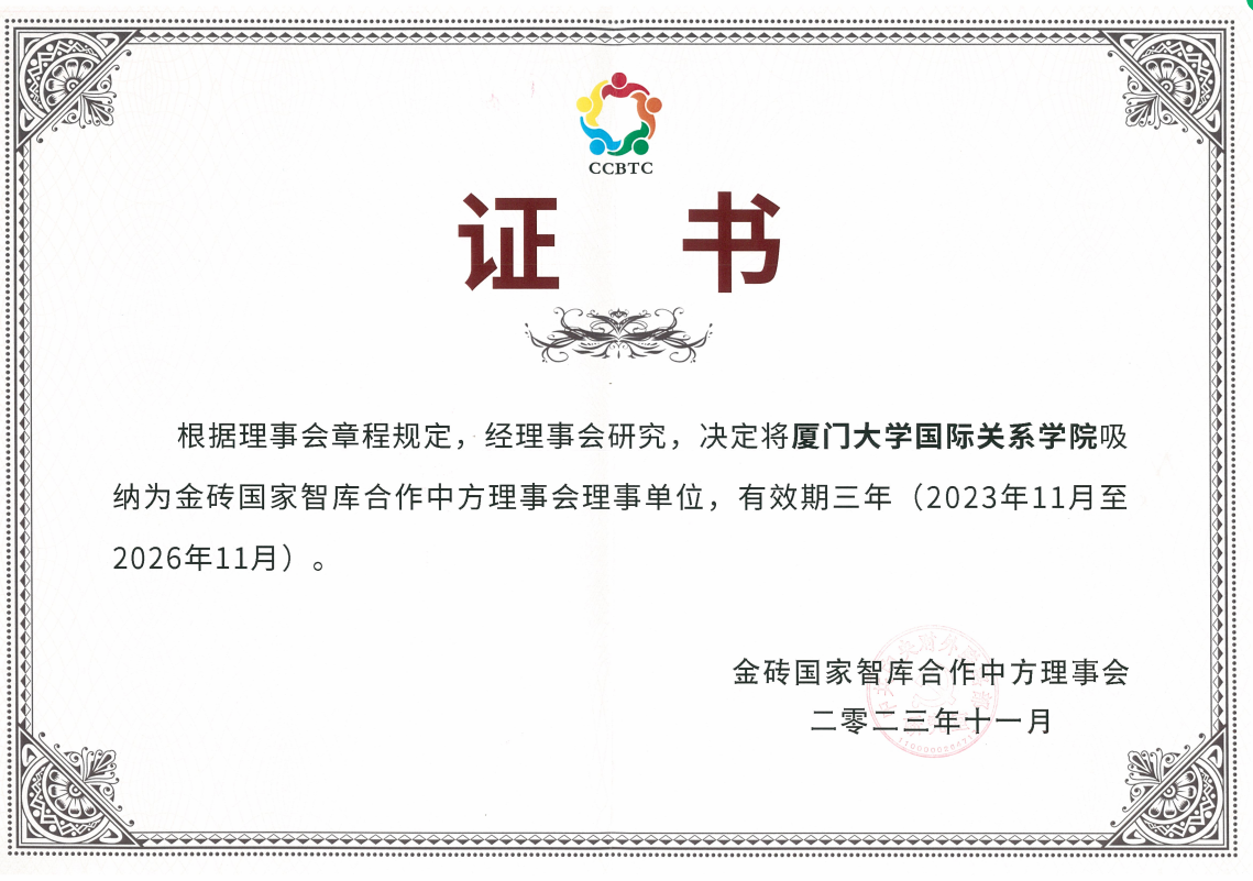 厦门大学国际关系学院/南洋研究院依托在东南亚研究领域的独特优势,长期瞄准国家重大战略需求,主动发挥咨政建言作用,积极配合国家周边外交战略和“一带一路”倡议,深度开展前瞻性、应用性、储备性政策研究。未来,学院将以金砖国家智库合作中方理事会理事单位为平台,深化区域国别学学科建设,积极建言献策,为金砖相关决策提供依据和智力支撑,持续贡献“南洋”智慧力量。