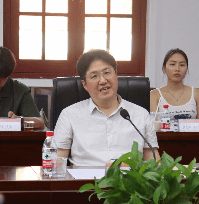 交流会上,双方就该议题进行了交流,首尔市立大学Kim Seokwoo教授对此发表一些见解,该研究为理解东亚与东南亚互动提供了新视角。金向东助理教授用朝鲜语与师生团进行简单交流。随后韩国首尔市立大学的学生就该议题进行提问,王昭晖副教授和张淼副教授对此进行解答。最后,张淼副教授对会议进行总结,再次欢迎韩国首尔市立大学的来访,双方互赠礼物,体现高校之间的友好往来和合作交流。