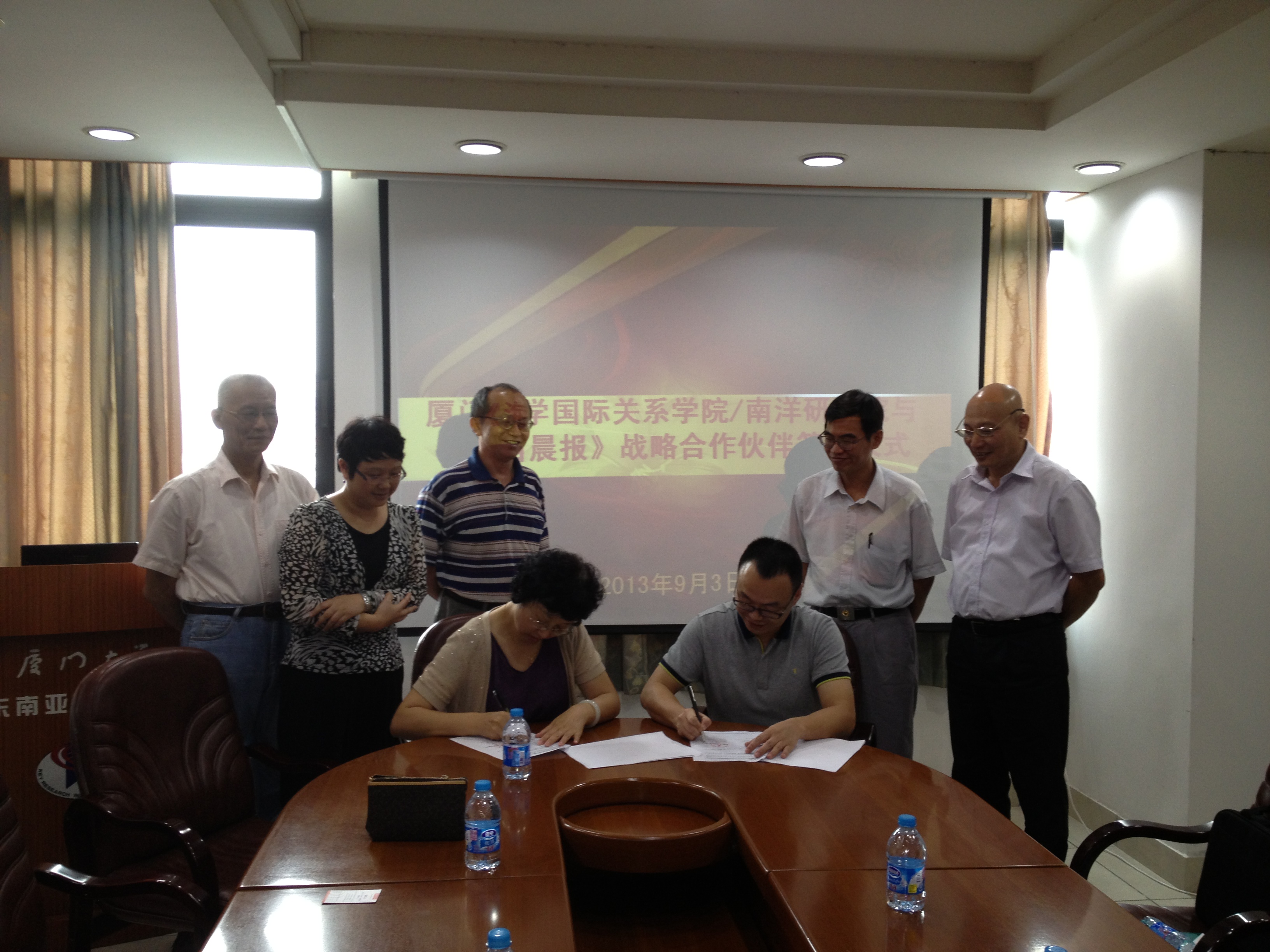报社有关负责人指出,“这是厦门日报社和厦门大学长期良好合作的一个重要成果,我们希望国际关系学院/南洋研究院的教授专家团队今后能够以其在专业领域的深入研究,为海西晨报在国内国际新闻报道方面提供更多的智力支持,共同打造出在海西地区有广泛影响力的新闻报道栏目;同时,我们也将通过媒体的信息平台优势,为学院科研与教学提供鲜活的案例,为大学生提供学习、成长的机会,为学院的人才培养提供积极的帮助。”