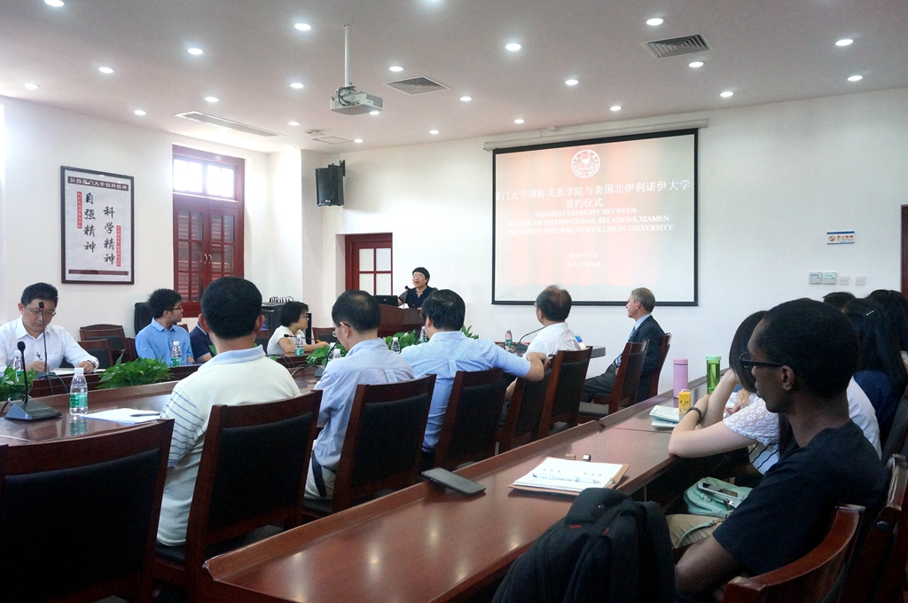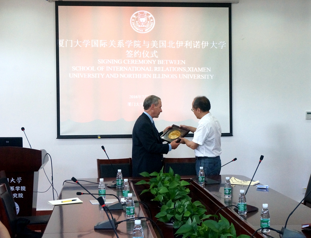 活动的第一个环节是厦门大学国际关系学院/南洋研究院与美国北伊利诺伊大学的签约仪式。我院院长李一平教授和Clymer教授分别代表双方签署了合作协议。这一时刻,不仅标志着这两所大学合作之旅的开始,也是我院走向国际的又一里程碑。