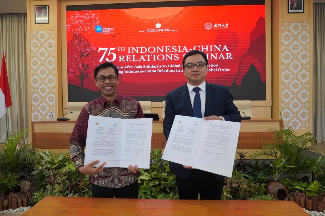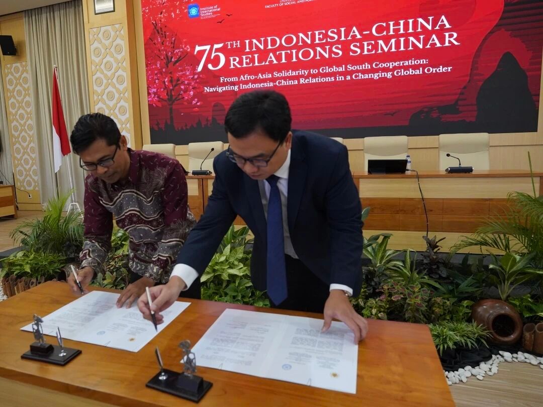 2025年10月3日,在印度尼西亚日惹举行的纪念中印尼建交75周年专题研讨会上,厦门大学国际关系学院/南洋研究院与印尼加查马达大学社会与政治科学学院共同签署了关于建立中印尼关系联合研究中心的协议书。厦门大学国际关系学院/南洋研究院院长高艳杰教授与加查马达大学社会与政治科学学院院长Wawan Mas'udi教授代表双方签署协议,标志着两校学术合作进入新阶段。