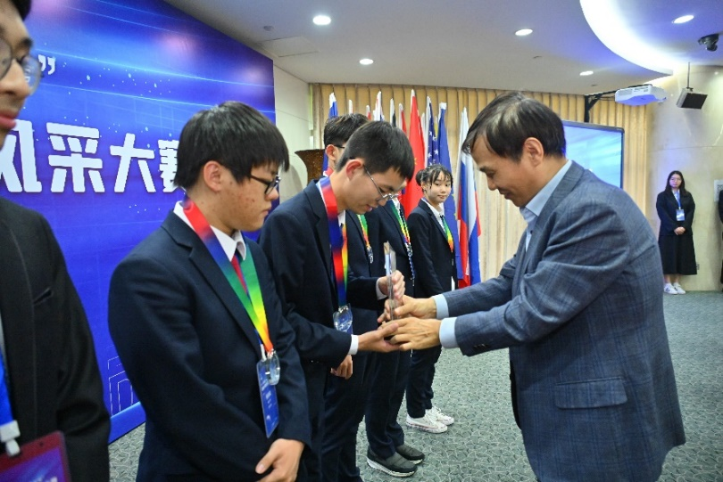 闭幕式上,现场嘉宾、评委为获奖团队和参赛选手颁发奖牌和奖杯。