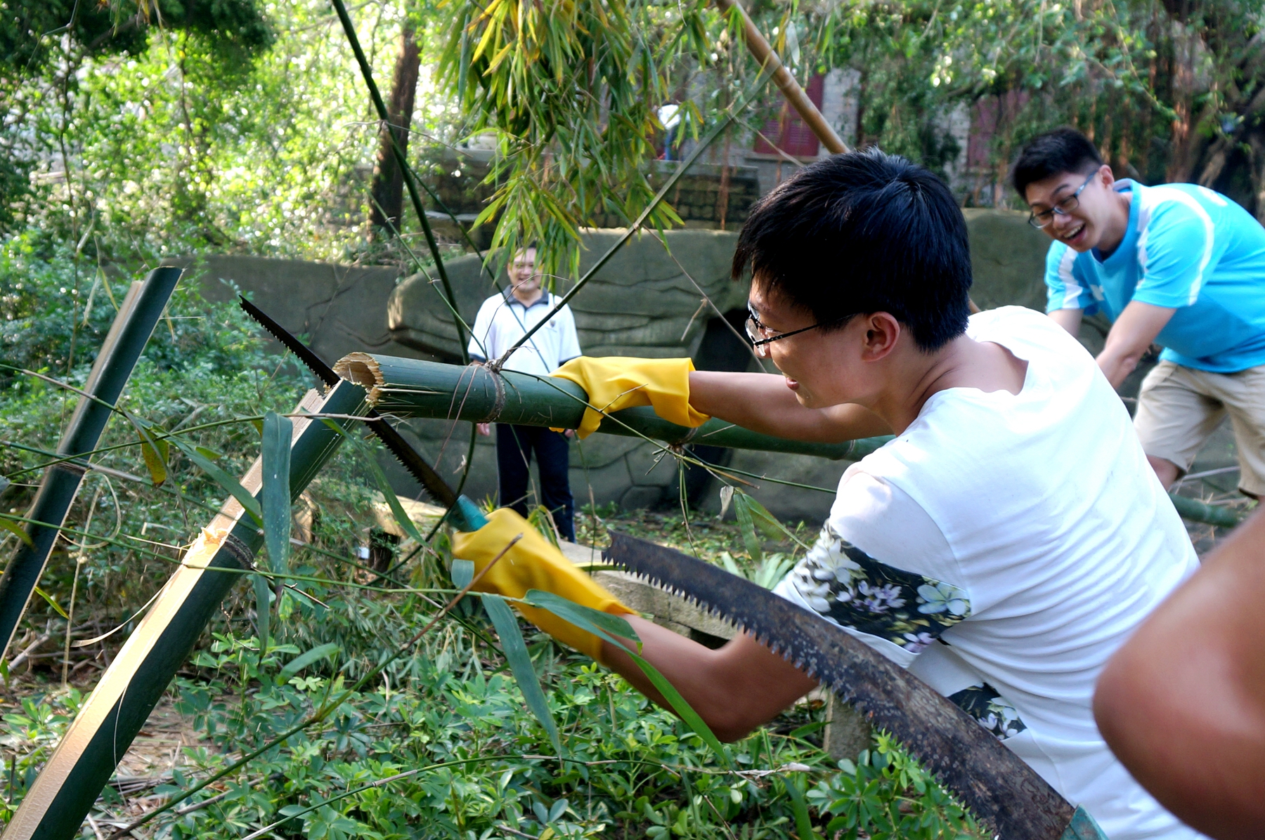 9月17日,由学工组老师带头,我院部分教师及学生共74名志愿者,于南安楼、建南大会堂、学生宿舍周边道路开展恢复校园环境的自救行动,清理断树,清扫道路,消除台风后的安全隐患。队伍中还包括了自愿前来的学院副院长施雪琴,及部分海外学生。