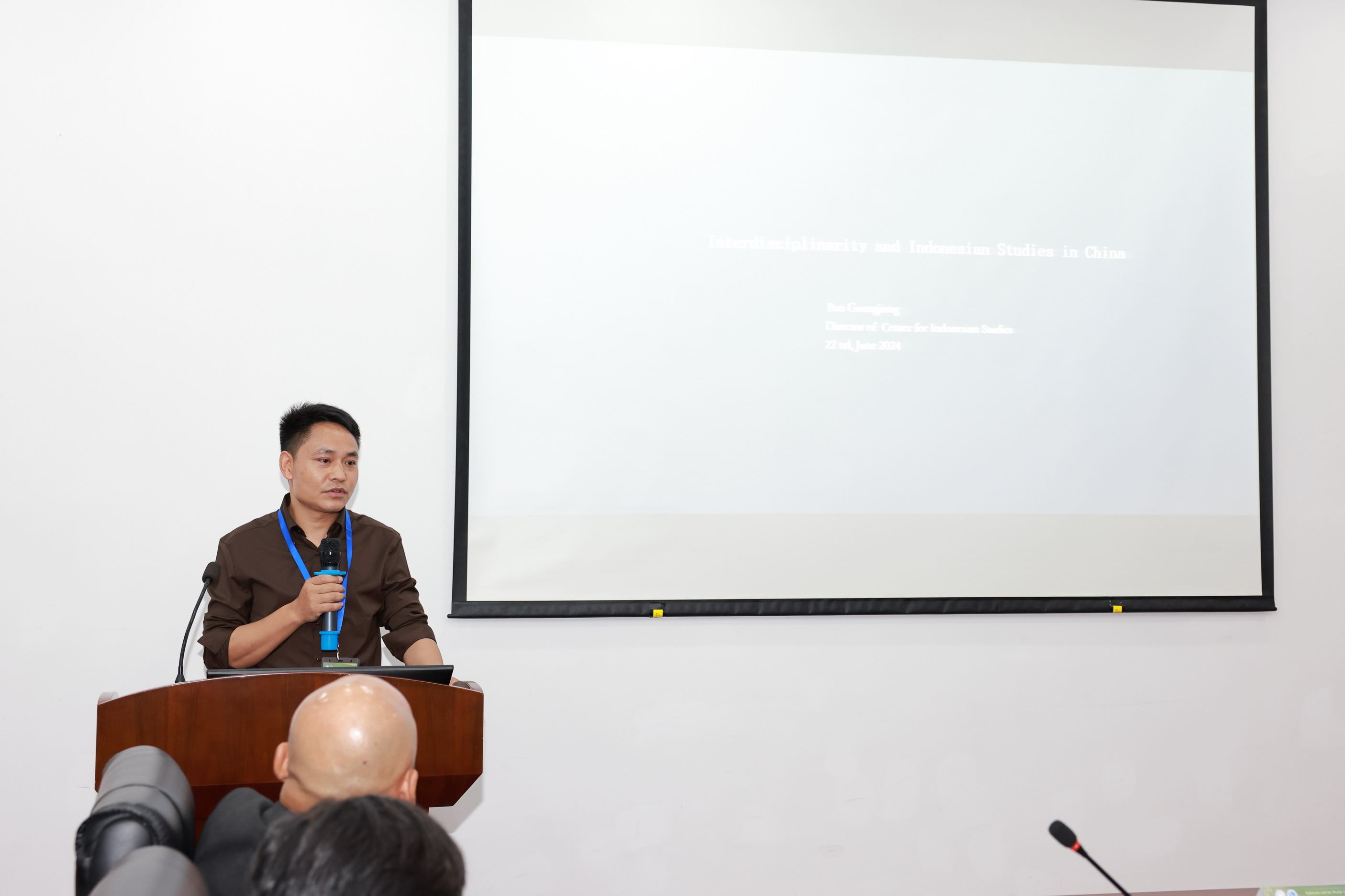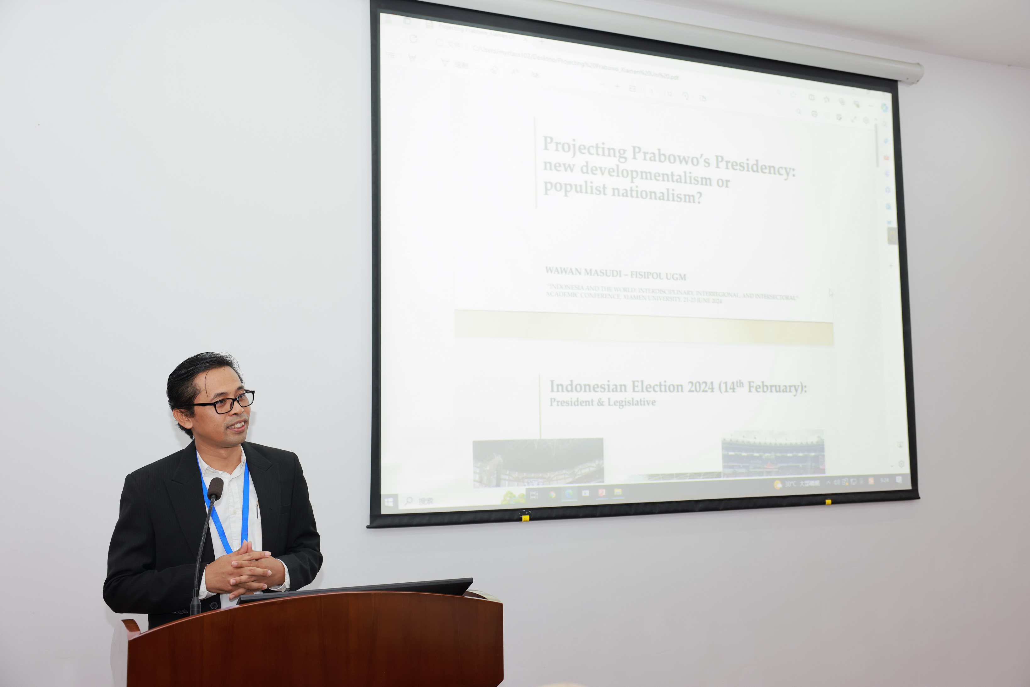 在主旨演讲环节,印度尼西亚查加马达大学社会与政治科学学院院长瓦万·马苏迪(Wawan Masudi)针对印尼即将上任的新总统进行了《普拉博沃总统执政展望:民粹主义还是新发展主义?》的专题演讲,不仅分析了普拉博沃大选成功的核心因素,还展望分析了新政府未来执政的民族主义和民粹主义两种倾向。印度尼西亚大学社会与政治科学学院副教授苏福万(Shofwan AI Banna)以《去殖民化是一场人类革命:苏加诺的国际秩序愿景和认同斗争》为题展开演讲,以苏加诺时期印尼对国际秩序的认知揭示了国际秩序的建构性特征。主办方厦门大学印尼研究中心主任包广将副教授则以《跨学科与中国的印尼研究》为题发表演讲,呼吁将印尼研究置于区域研究的跨学科框架下进行。三位学者分别从现实、历史和跨学科研究的角度对印尼研究中的重要问题进行了深入阐释。