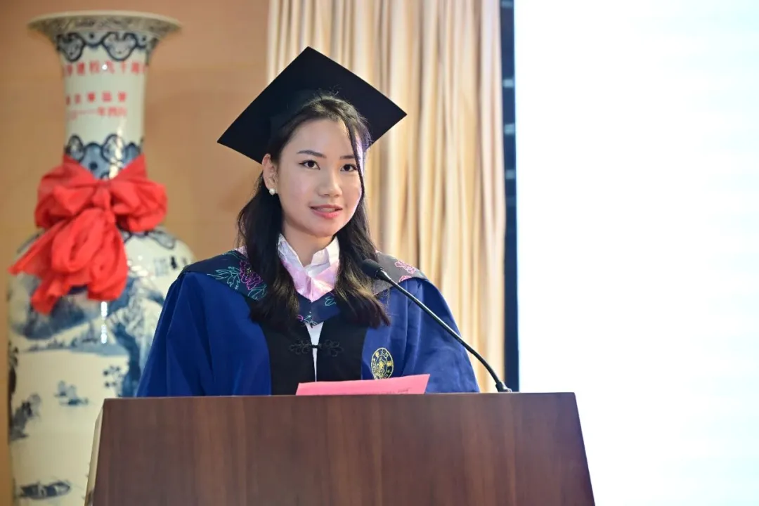 随后,2024届本科生郭初元、硕士生吴亮、外籍生BEATRICE MAYOSHE作为毕业生代表依次发言。