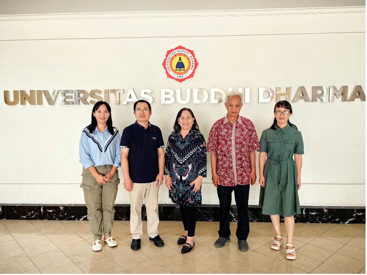 8月19日,冯立军教授一行访问了位于文登的印度尼西亚第一所佛教大学——德法大学(Buddhi Dharma University)。与德法大学校长利马贾蒂尼教授进行了座谈,初步探讨了双方在交流合作方面的可能性。利马贾蒂尼校长带领冯立军教授一行参观了校园,并参观了华人墓园、文登最古老的寺庙和华人博物馆。