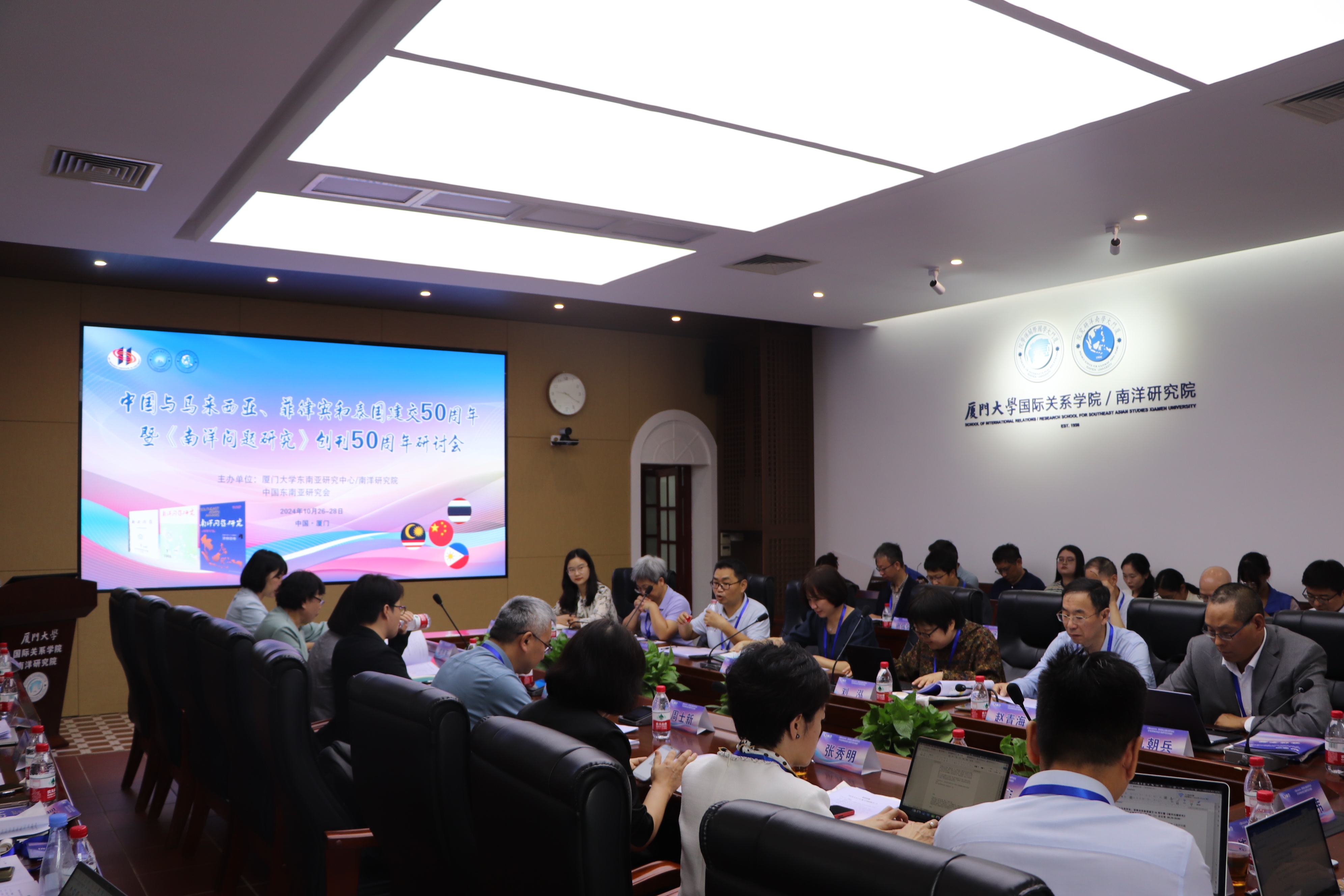 2024年10月26-28日,由厦门大学东南亚研究中心/南洋研究院、中国东南亚研究会主办的“中国与马来西亚、菲律宾和泰国建交50周年暨《南洋问题研究》创刊50周年研讨会”在福建厦门顺利召开。来自《世界民族》《当代亚太》《国际问题研究》《国际政治科学》《美国研究》《国际政治研究》《太平洋学报》《国际安全研究》《厦门大学学报(哲社版)》《中国社会经济史研究》《国际论坛》《华侨华人历史研究》《东南亚研究》等刊物编辑部的专家,以及来自中国社会科学院、北京大学、外交学院、北京外国语大学、中国社会科学出版社、中国社会科学杂志社、中山大学、上海国际问题研究院、对外经济贸易大学、暨南大学、天津师范大学、华侨大学及厦门大学的四十余名专家学者出席了本次活动。
