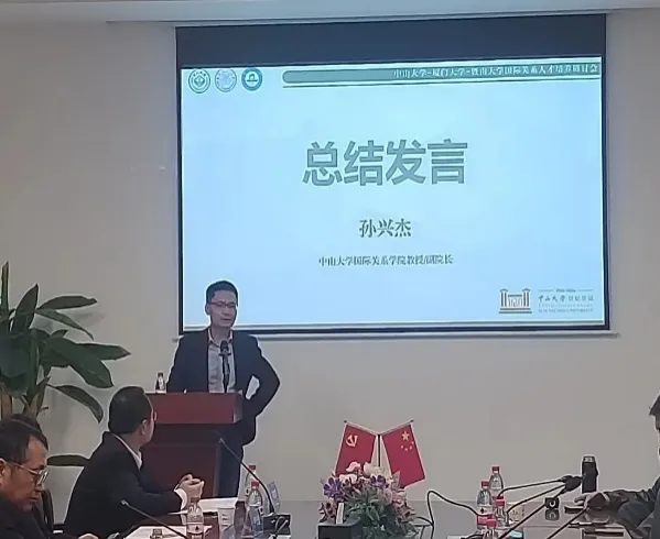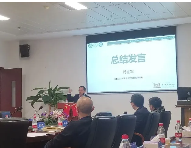 随后,中山大学国际关系学院副院长孙兴杰教授和我院副院长冯立军教授分别作会议总结发言。他们高度评价了本次研讨会的成果,认为会议不仅深化了五校之间的学术交流,也为国际关系人才培养提供了宝贵经验。两位教授均强调,在当前全球化与学科交叉日益发展的背景下,国际关系人才培养需注重学生的国际视野、创新能力和实践精神,同时要平衡区域研究与国别研究,推动学科融合。展望未来,他们希望五校持续深化合作,通过定期研讨、资源共享和联合培养,不断提升国际关系学科的整体水平与影响力。