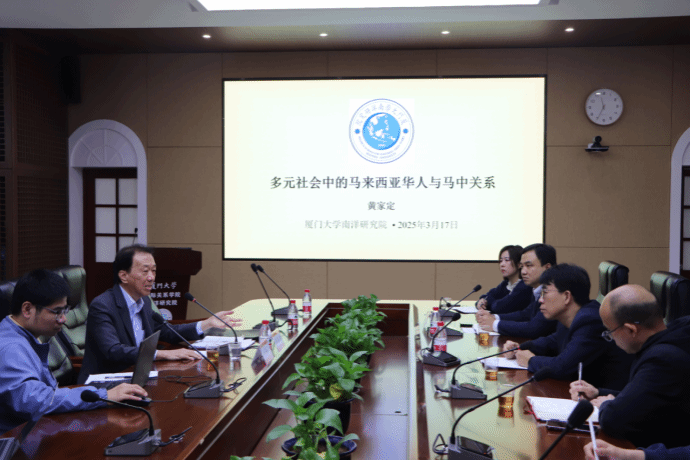 2025年3月17日上午,主题为“多元社会中的马来西亚华人与马中关系”的讲座在厦门大学南安楼301-3会议室举行。本次讲座特邀厦门大学国际关系学院/南洋研究院客座教授Ong Ka Ting(丹斯里黄家定)担任主讲人。黄教授曾任马来西亚—中国商务理事会主席兼对华特使、马来西亚房屋及地方政府部长、马来西亚华人公会总会长等重要职务。