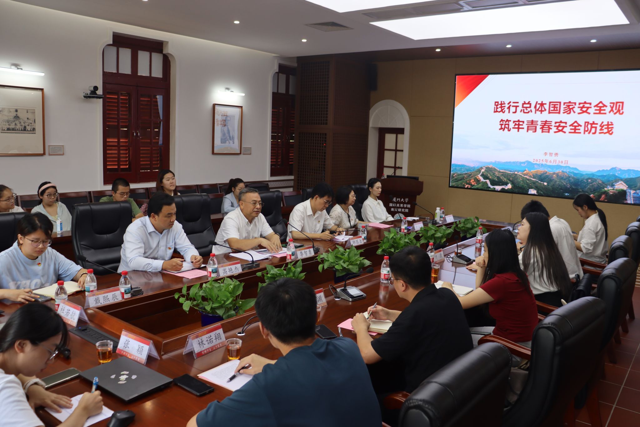 6月30日上午,校党委常委、副校长李智勇在南安楼301-3会议室为国际关系学院/南洋研究院学子讲授“践行总体国家安全观 筑牢青春安全防线”专题思政课。