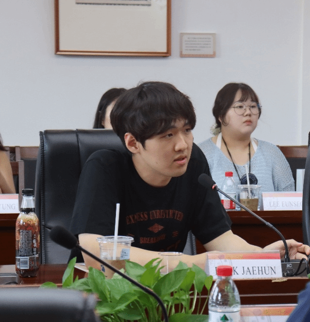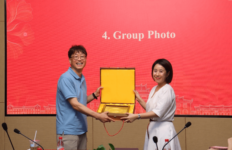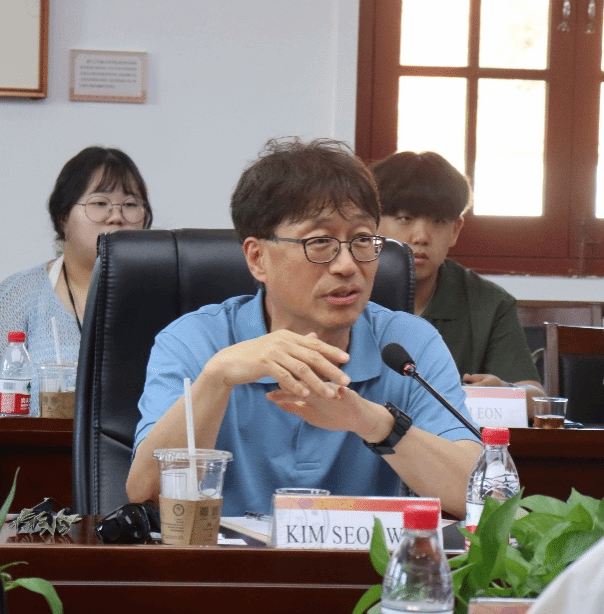 交流会上,双方就该议题进行了交流,首尔市立大学Kim Seokwoo教授对此发表一些见解,该研究为理解东亚与东南亚互动提供了新视角。金向东助理教授用朝鲜语与师生团进行简单交流。随后韩国首尔市立大学的学生就该议题进行提问,王昭晖副教授和张淼副教授对此进行解答。最后,张淼副教授对会议进行总结,再次欢迎韩国首尔市立大学的来访,双方互赠礼物,体现高校之间的友好往来和合作交流。